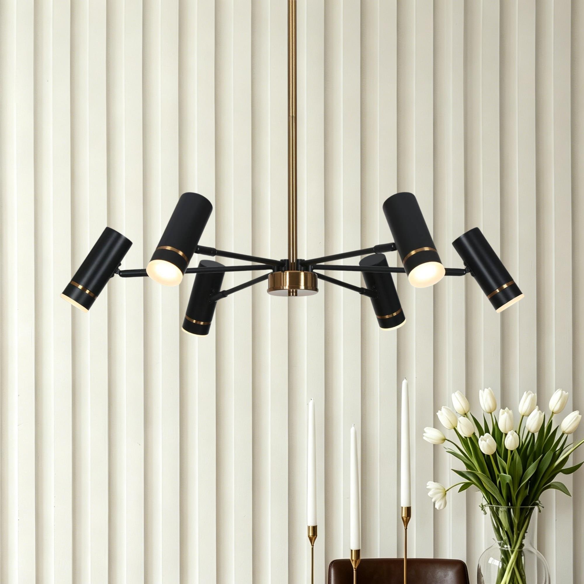 Modern Contemporary 6-Light Black Gold LED Chandelier Metal Wheel Pendant Light for Dining Room - 28" W x 6" H