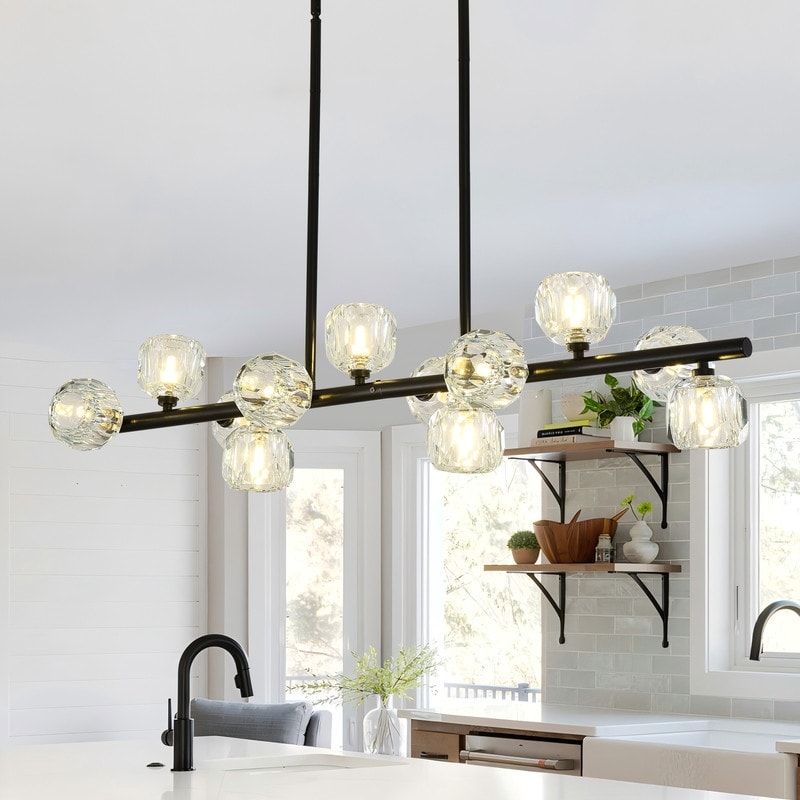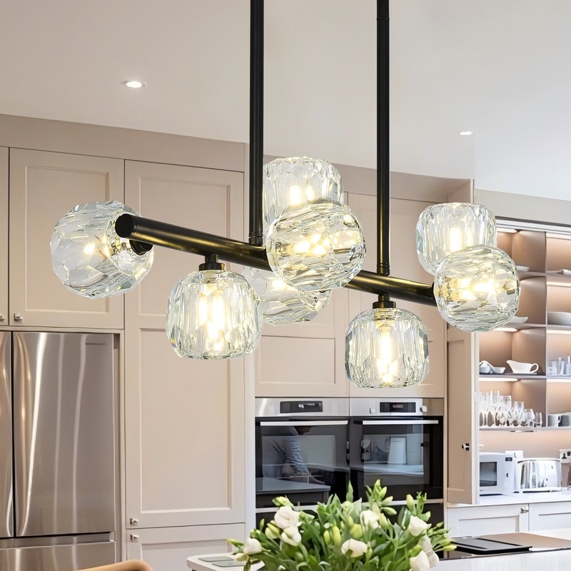 Modern Crystal Chandelier for Dining Room Black Pendant Lights Fixture Adjustable Height Hanging Ceiling Light