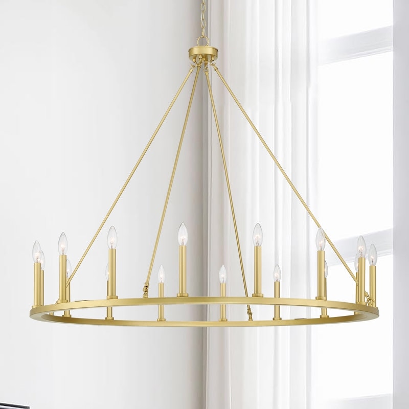 40" Brushed Gold 16-Light Wagon Wheel Candle Style Chandelier