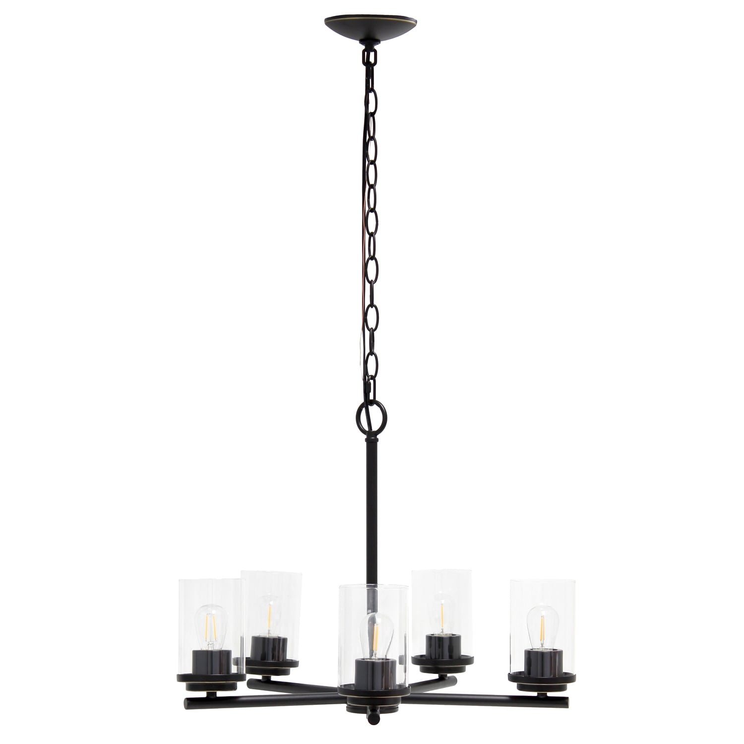 5-Light Pendant Chandelier - Clear Glass & Metal Hanging Light Fixture - Kitchen Island Lighting - 5.25
