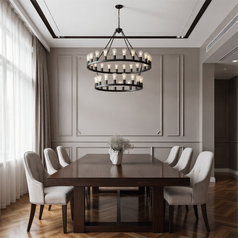 47.24" Matte Black Wagon Wheel Chandelier With 36-Lights (No Bulbs)