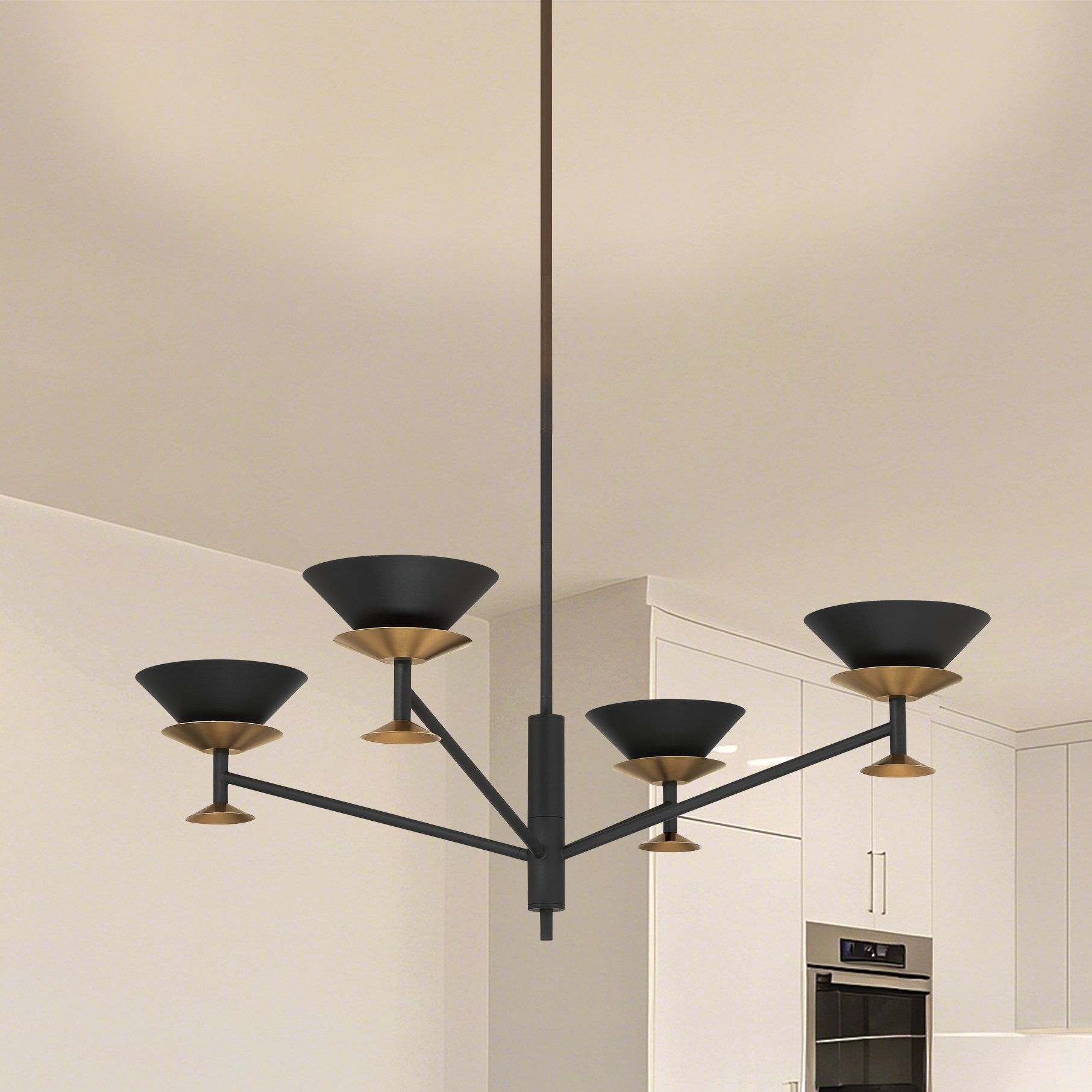 Tremolo 36-inch 4-light Textured Black and Champagne Gold Chandelier - L: 36" x W: 36" x H: 11.75" x M-H: 66"