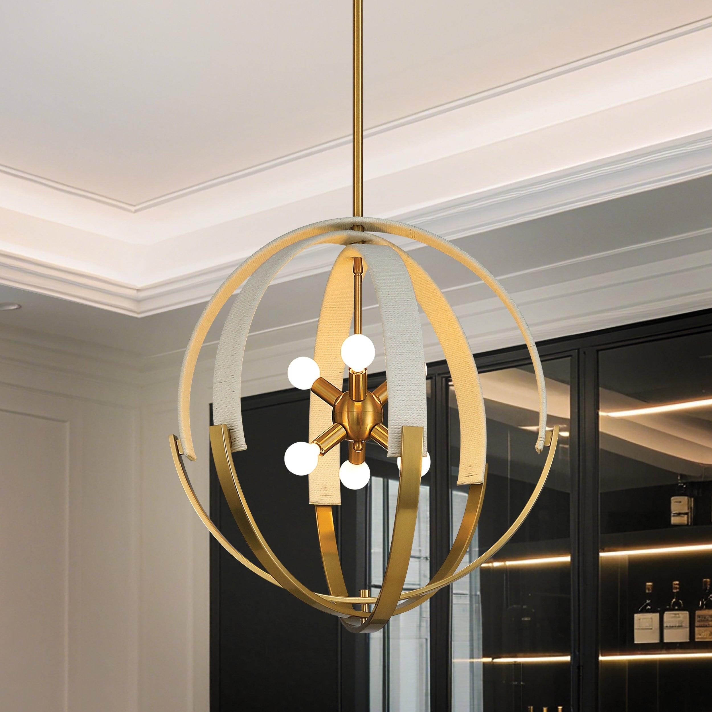 Abbey 23-inch 6-light Brass and Cream Cotton Rope Chandelier - L: 23.5" x W: 23.5" x H: 25.75" x M-H: 82.75"