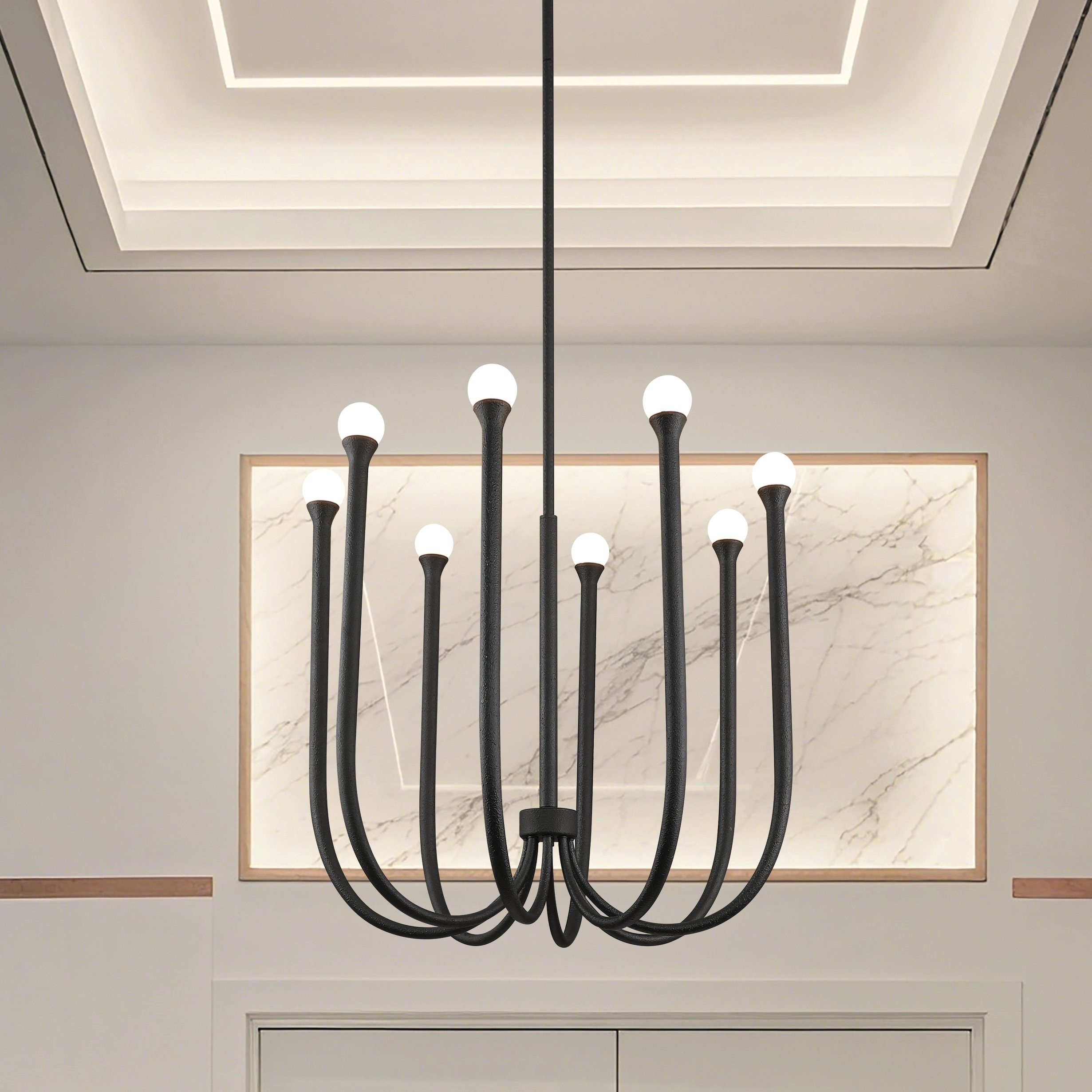 Dahlia 28-inch 8-light Plaster Black Chandelier with Opal Glass Shades - L: 28" x W: 28" x H: 26" x M-H: 79"