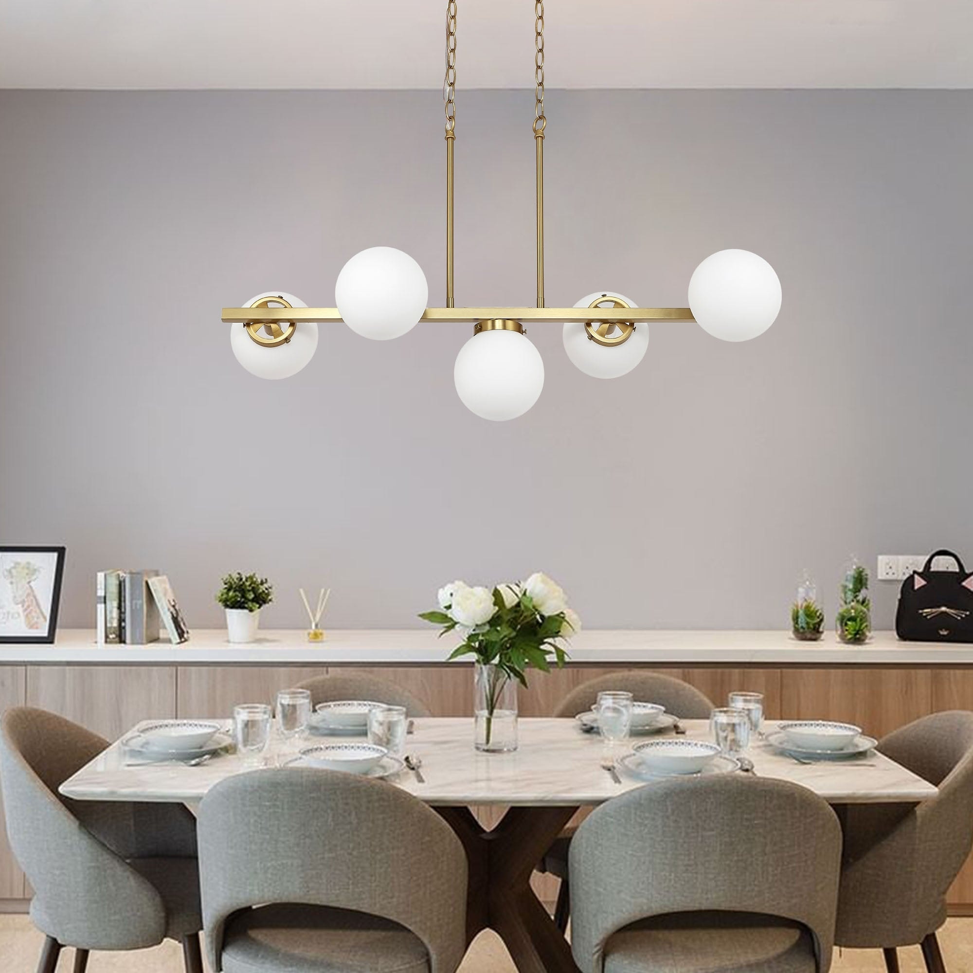 Modern Chandelier Sputnik Brass 5-Light Opal Glass 36"