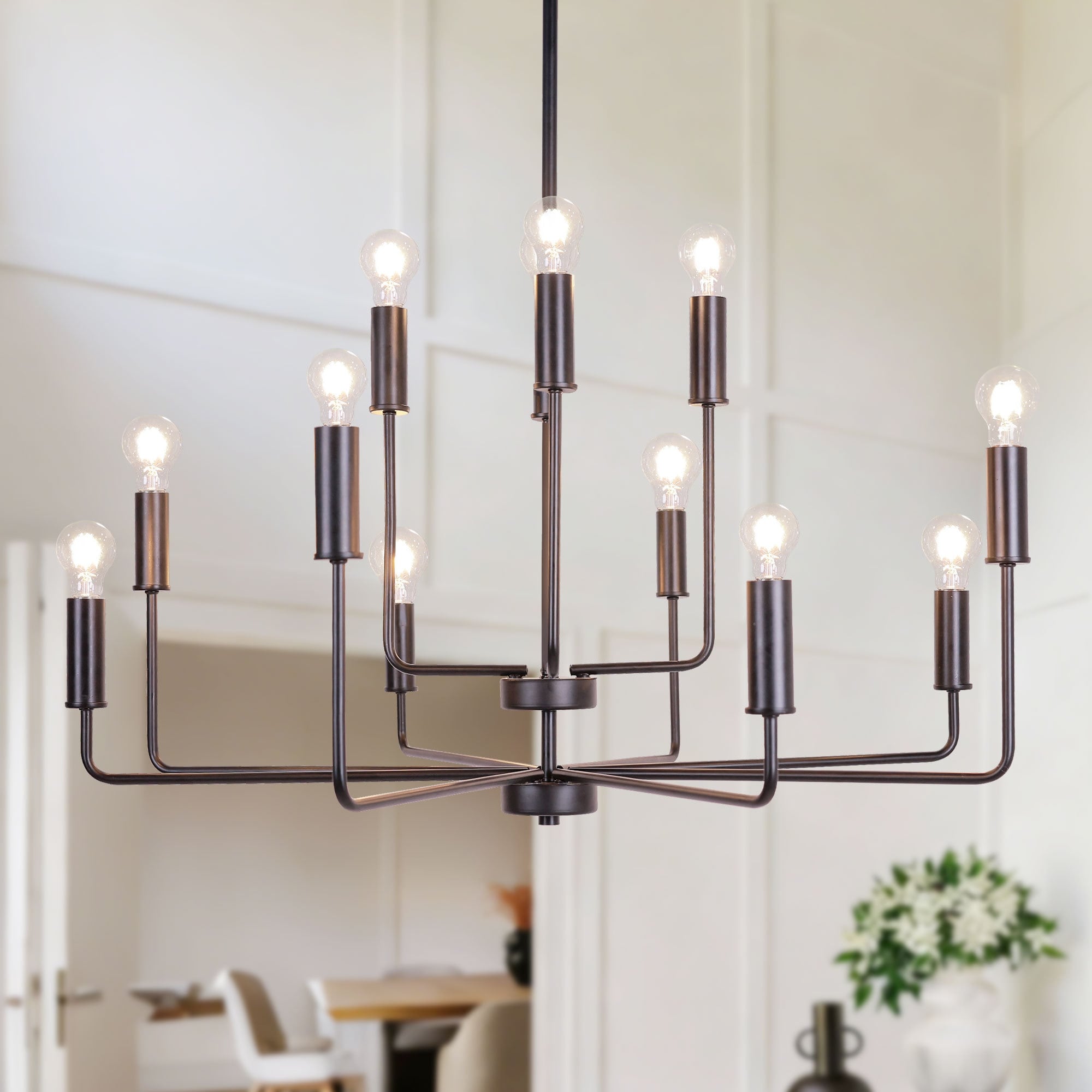 Modern 12-Light Black Chandelier Candle Large Light Fixture for Dining Room - 39.3 " L × 43.3 " H