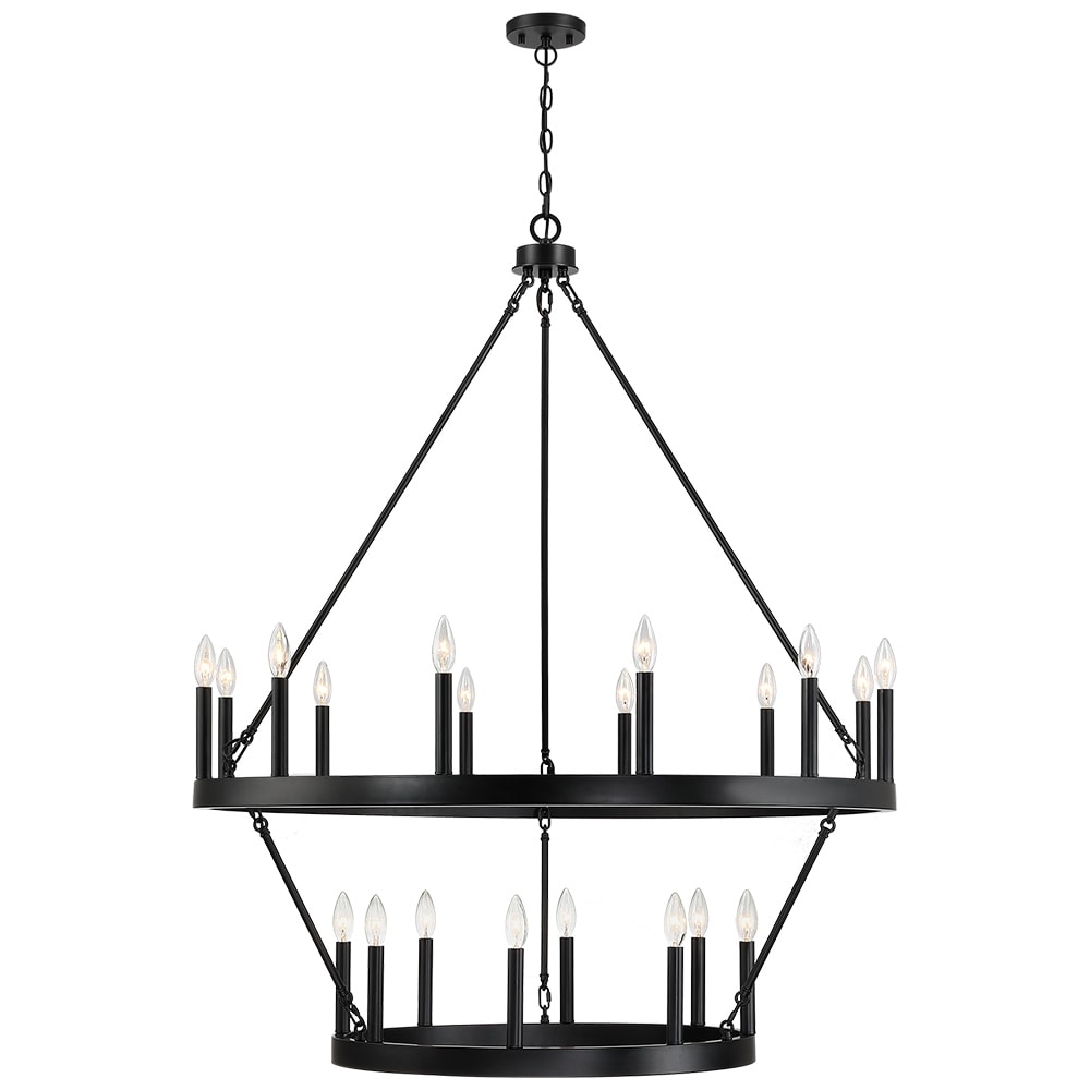20-Light Black Candle Style Wagon Wheel Chandelier - 40"D x 148"H - 40 in. W