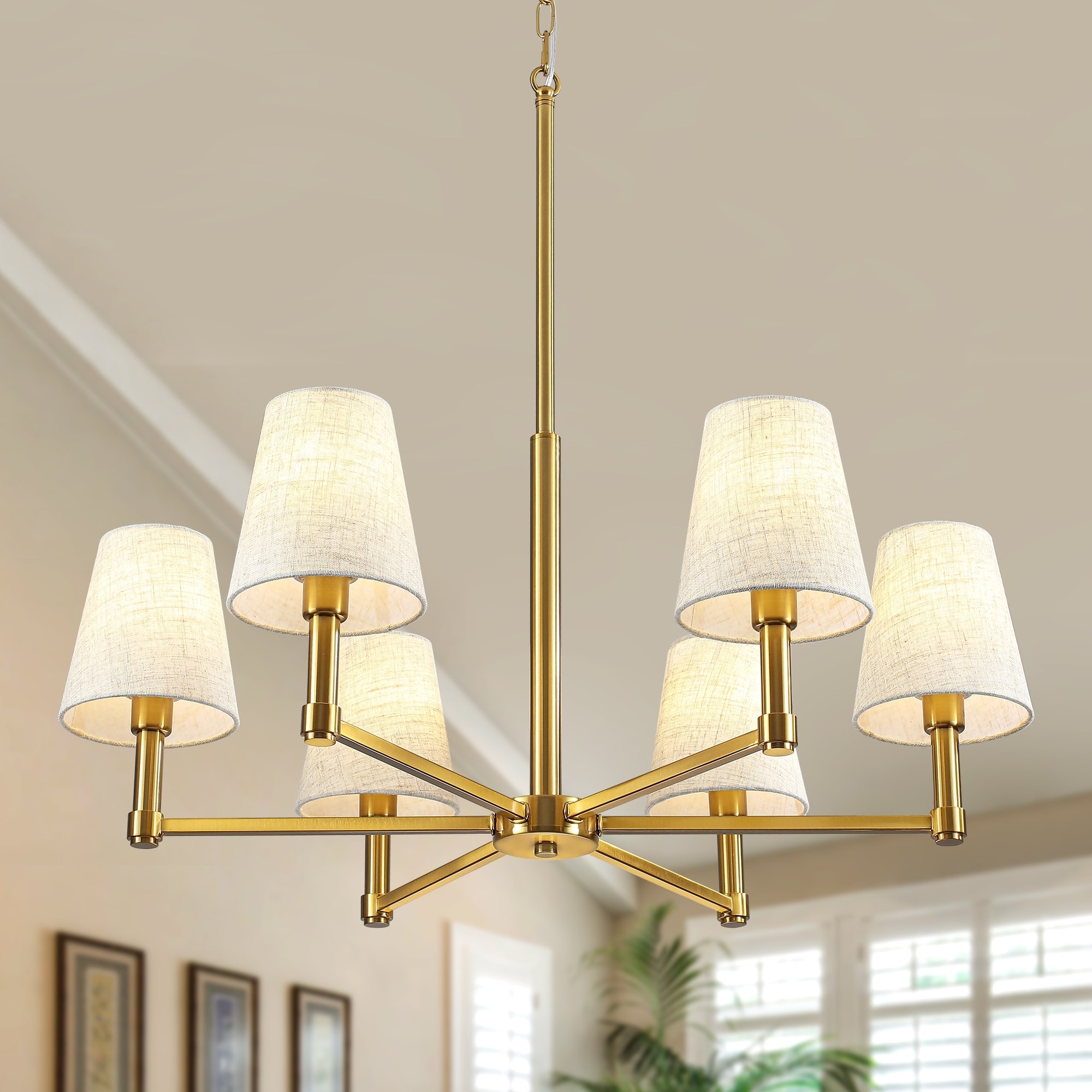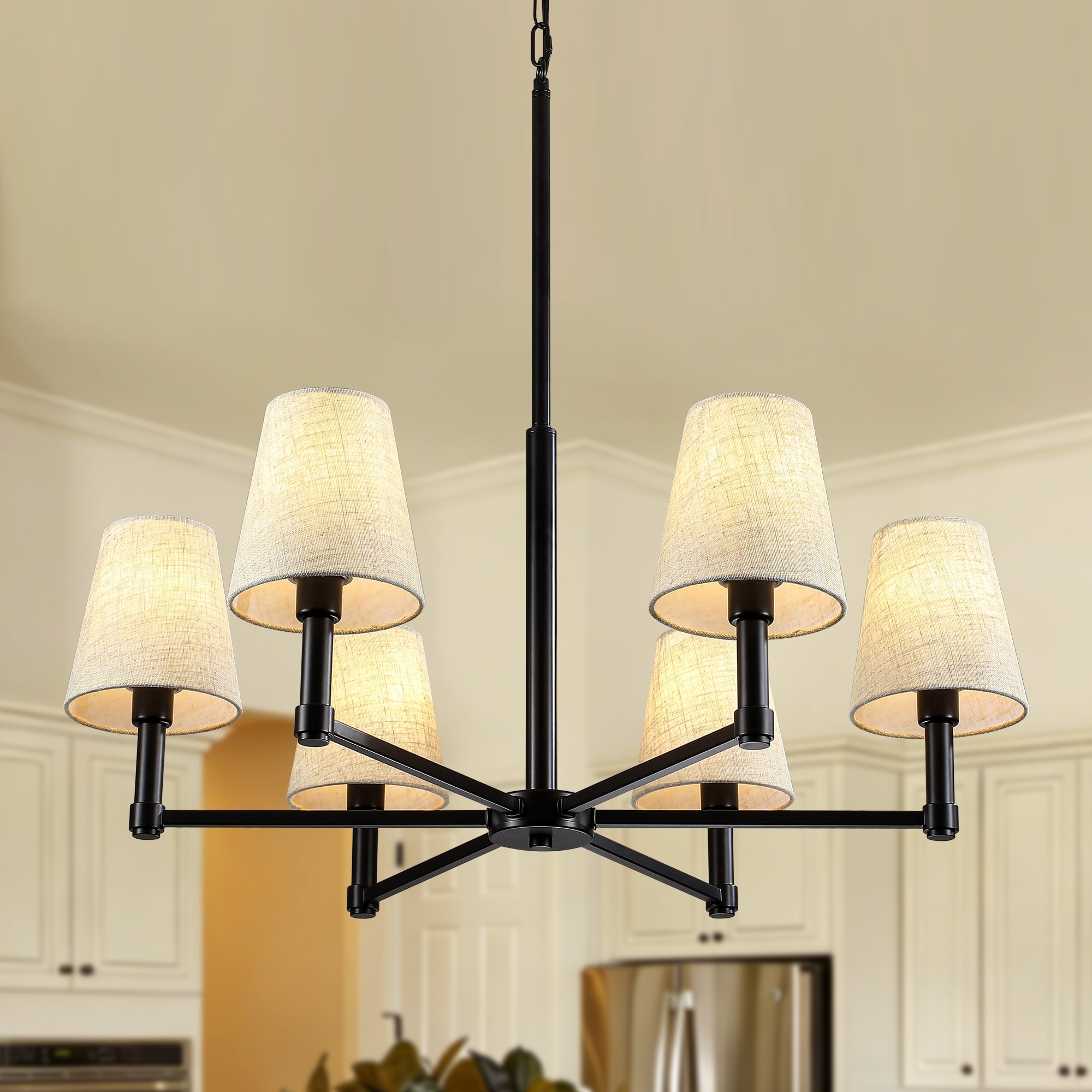 Farmhouse 6-Light Chandelier with White Fabric Shades for Dining Room, Living Room, Bedroom