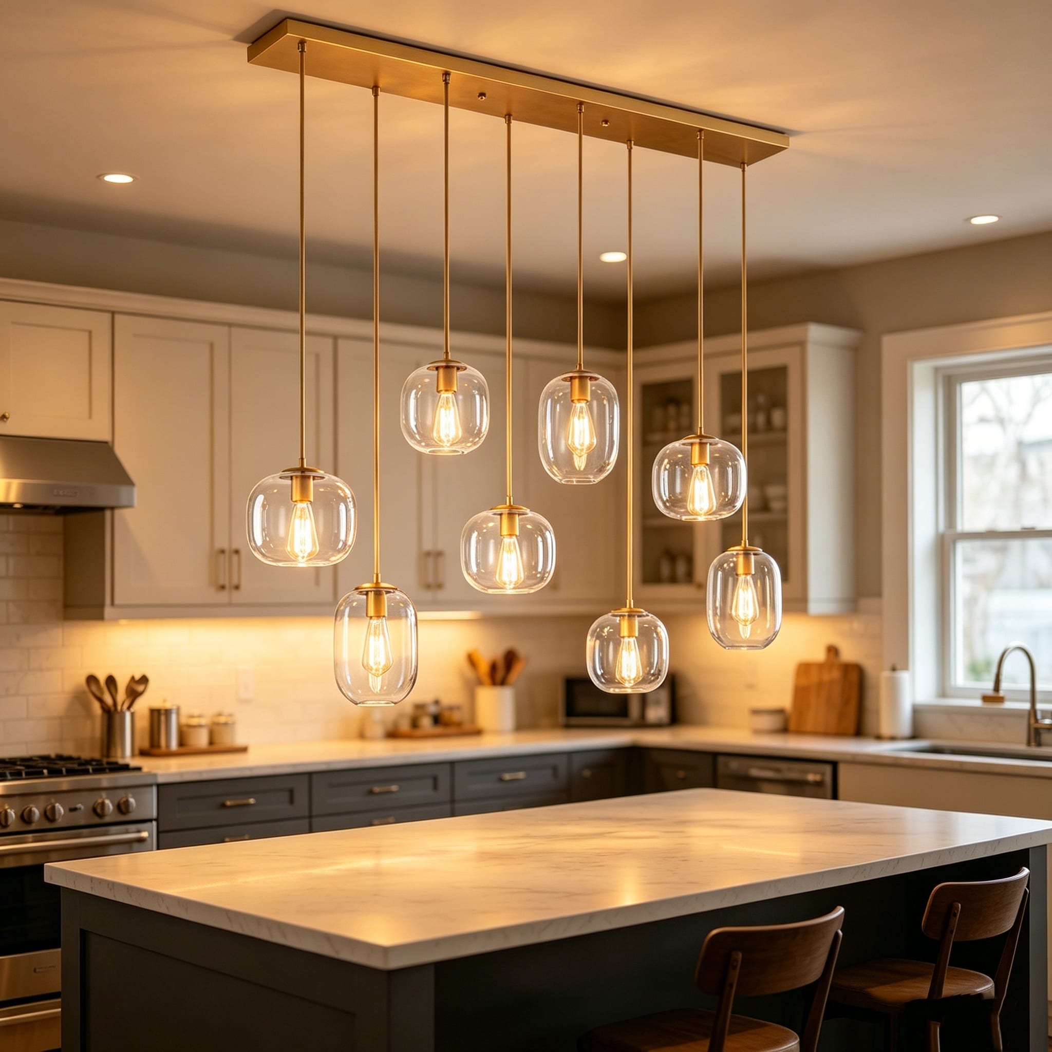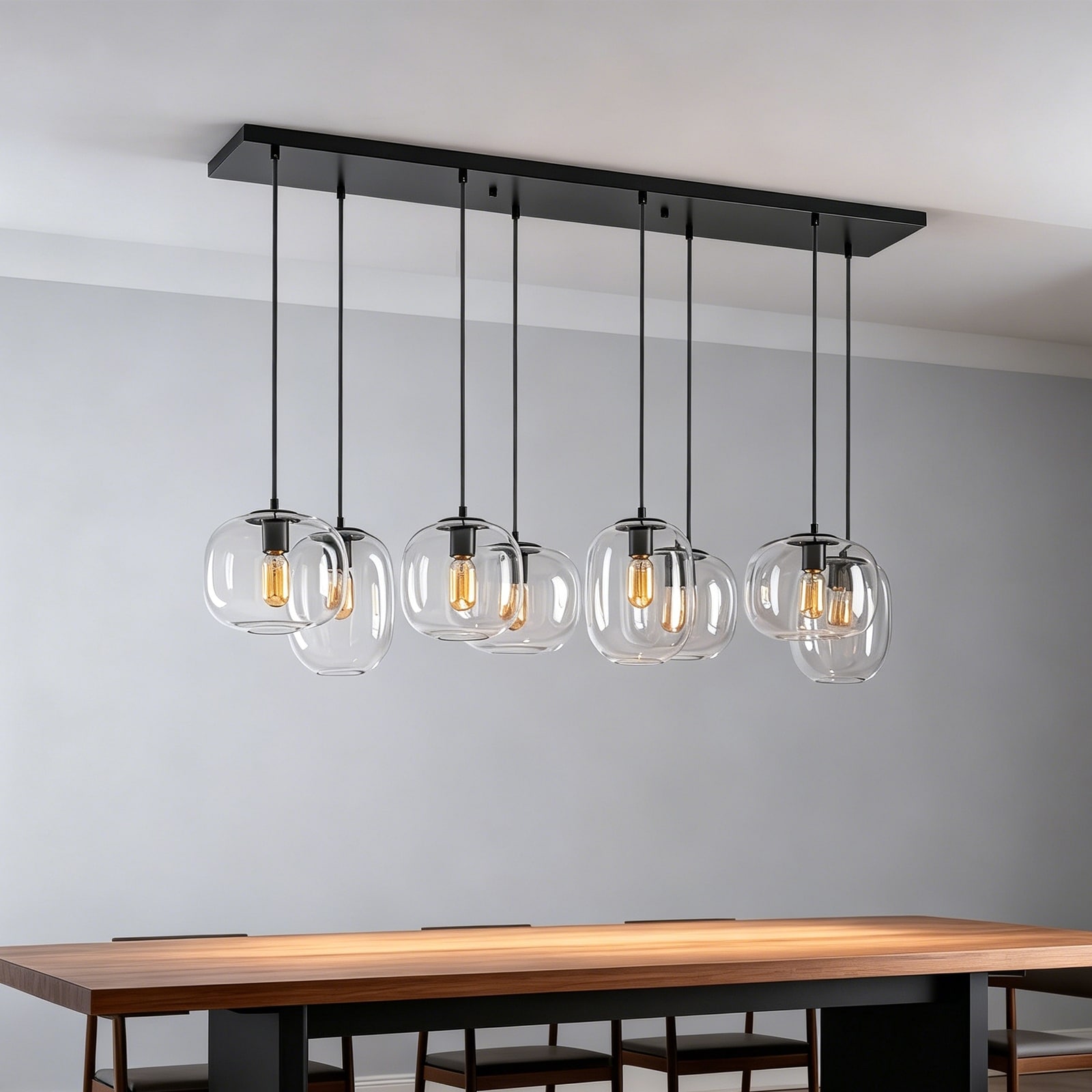 8-Light Gold / Black Linear Chandelier Modern Pendant Light with Clear Glass