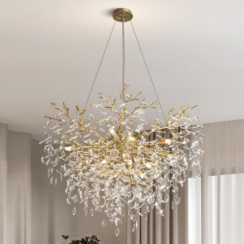 Modern Round Branch Crystal Chandelier, 600-1200mm Diameter, Marquise Cut Crystal Pendant Light