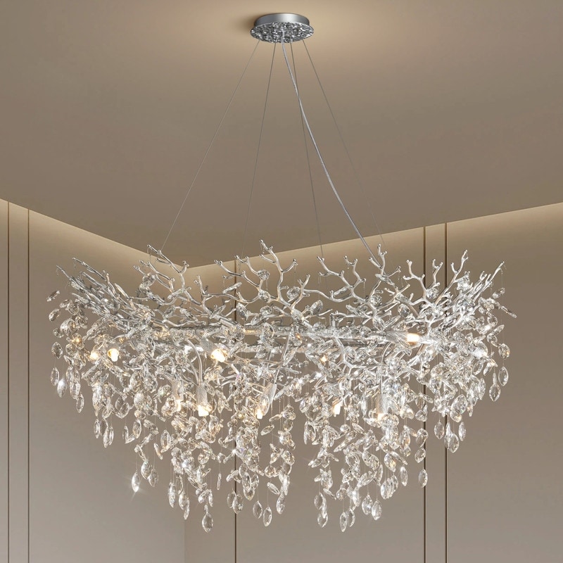 Modern Round Branch Crystal Chandelier, 600-1200mm Diameter, Marquise Cut Crystal Pendant Light