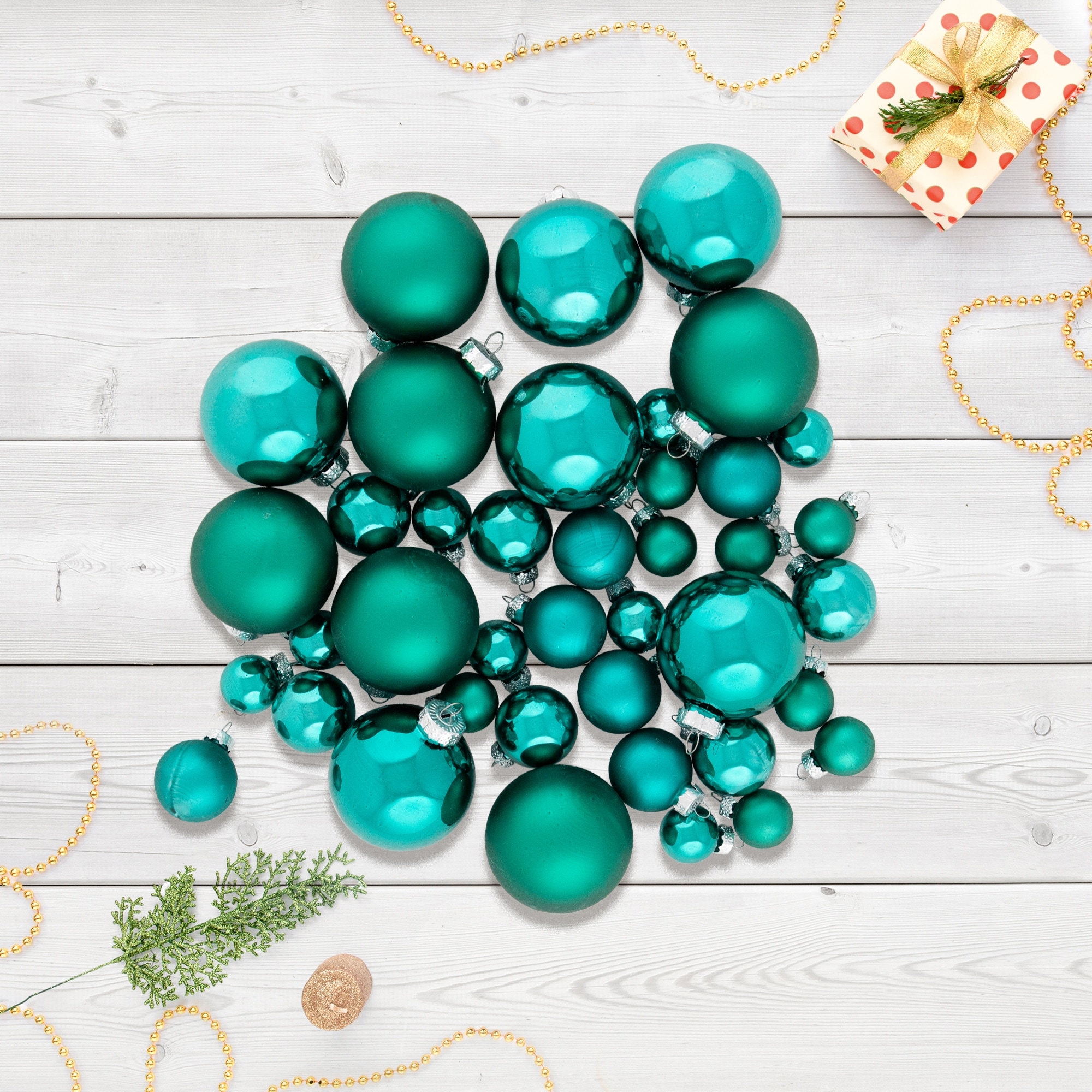 Shiny and Matte Multiple Size Glass Ball Christmas Ornaments - 2.5" - Green - 40ct