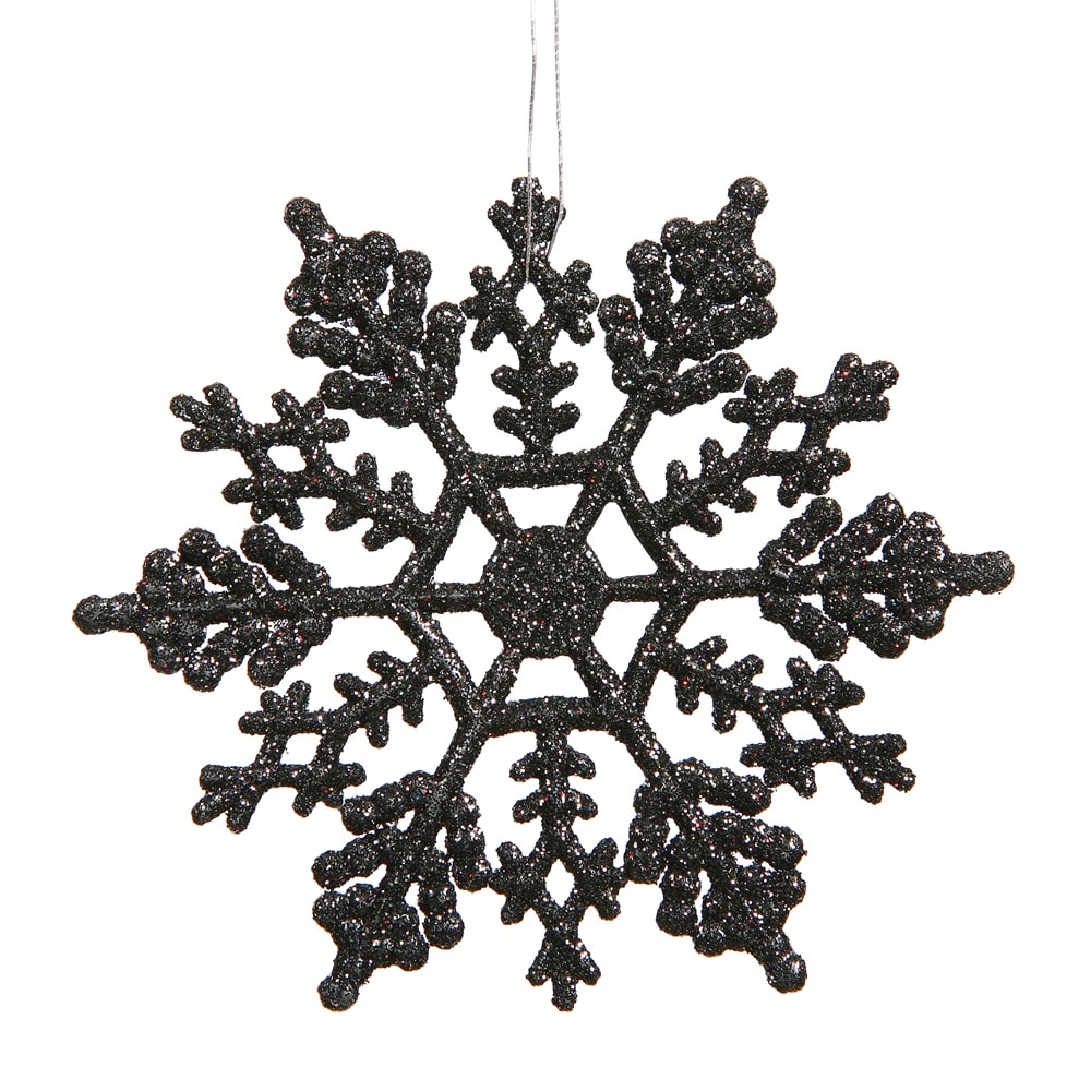 24ct Jet Black Glittered Snowflake Hanging Christmas Ornaments 4"