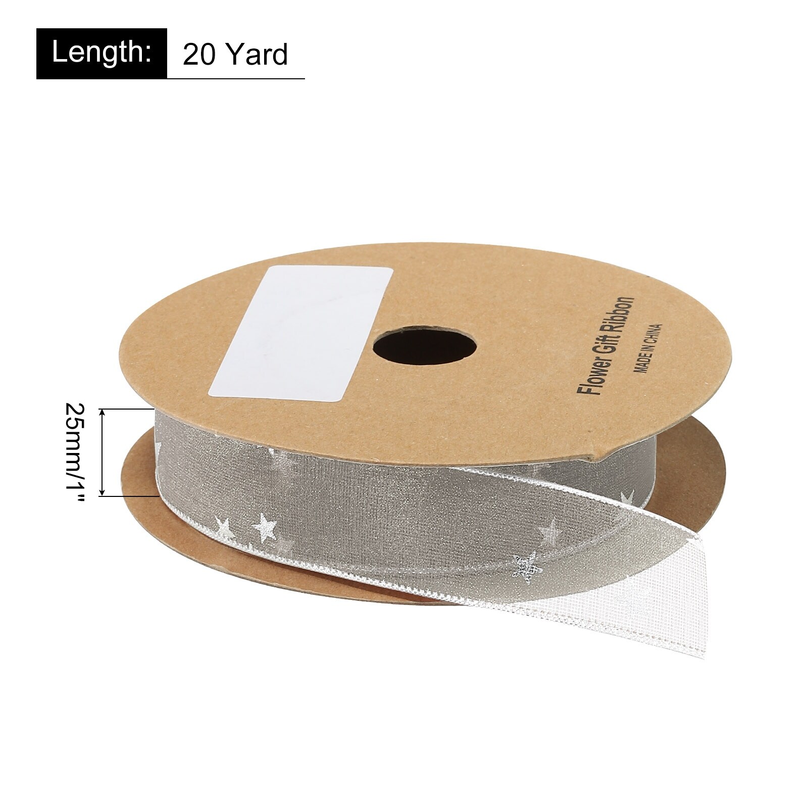 1Inch 20 Yard Star Organza Sheer Ribbon Printed Grey for Gift Wrapping