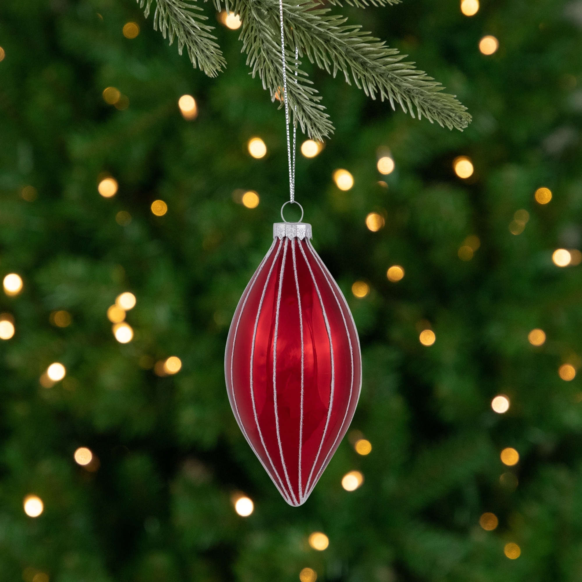 5" Shiny Red White Glittered Striped Glass Finial Christmas Ornament