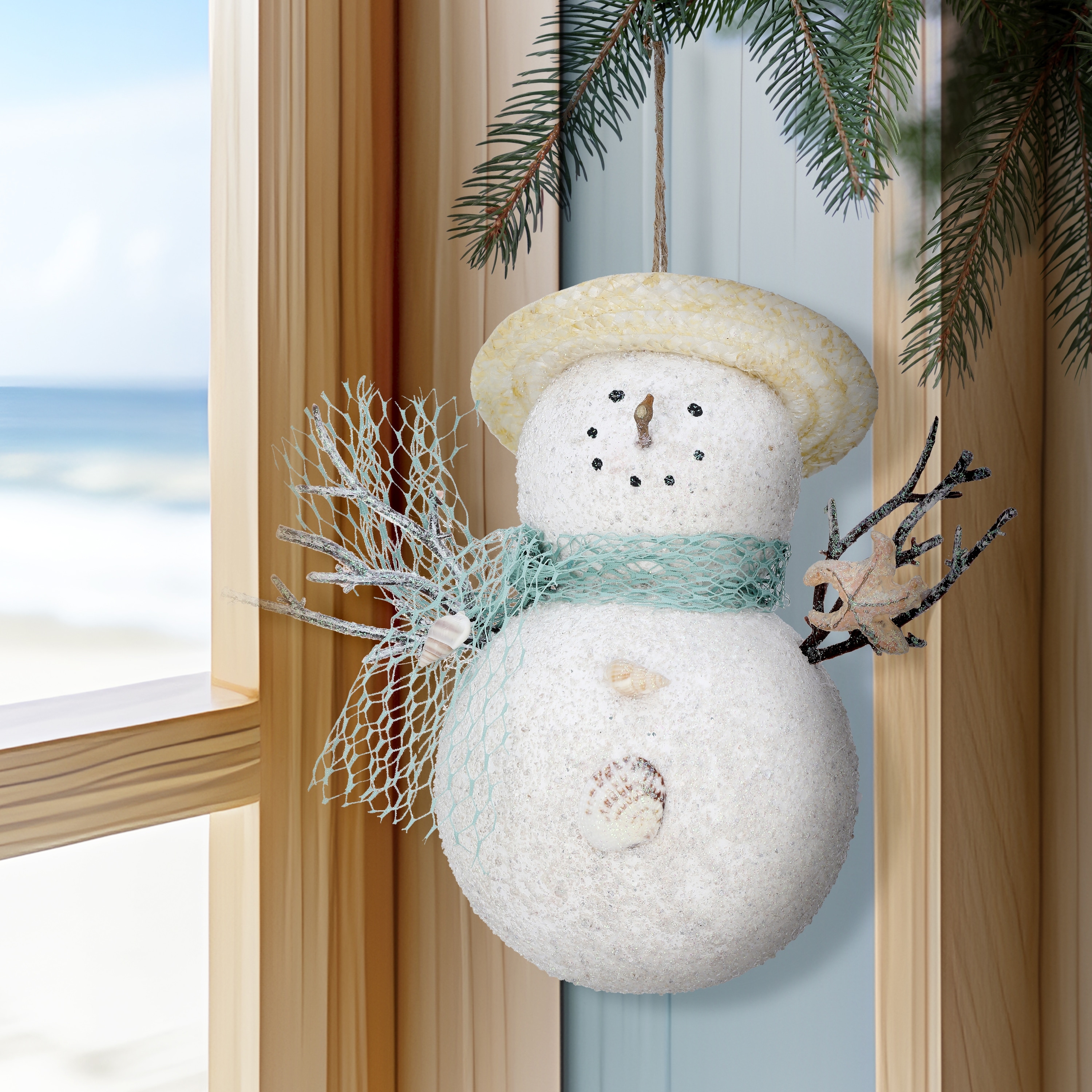 7" Coastal Snowman Ornament