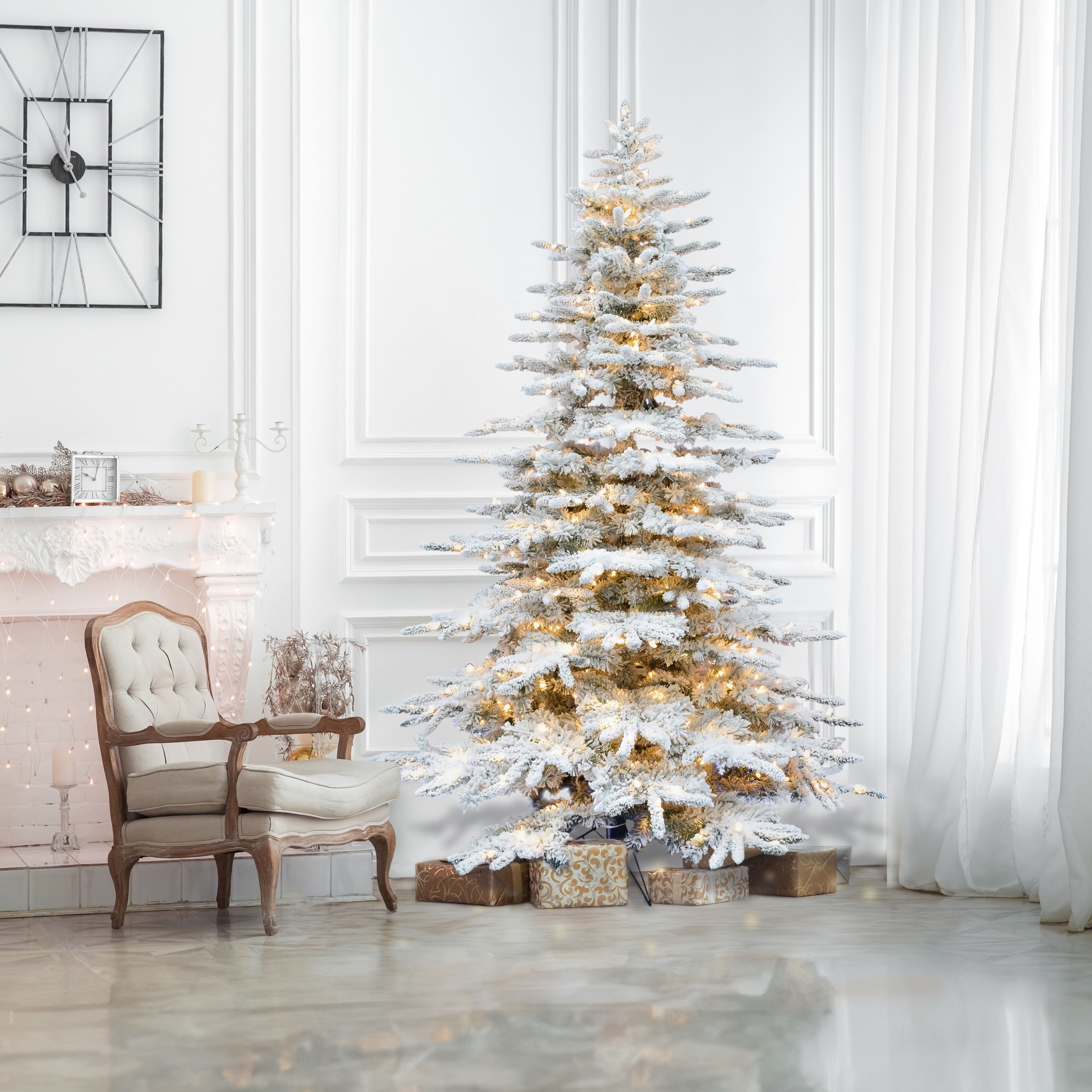 Fraser Hill Farm 10-Ft. Flocked Pine Valley Artificial Christmas Tree with Smart String Lighting