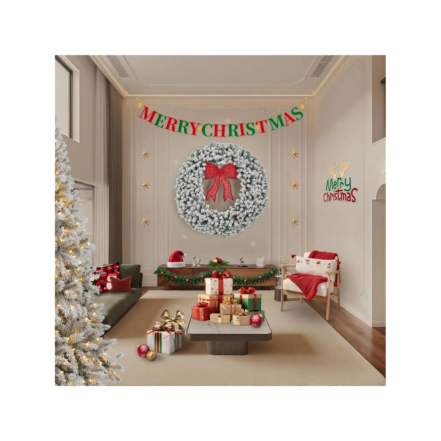 60 inch Pre-Lit Christmas Wreath With Bow Winter Artificial Wreath With Lighted