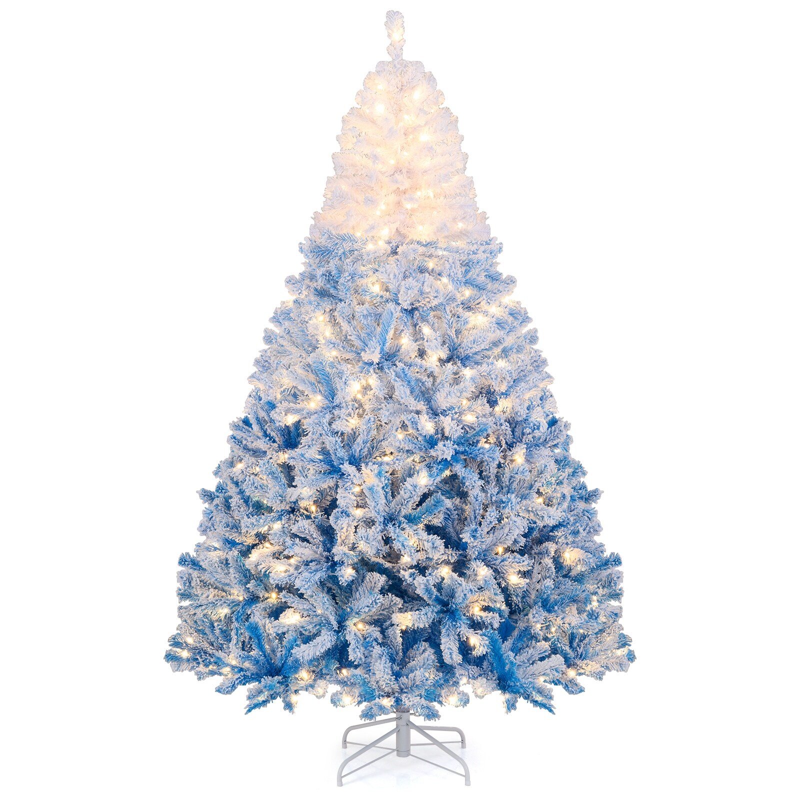 Gymax 5/6/7/8 FT Artificial Christmas Tree Hinged Snow Flocked Xmas - Blue, White