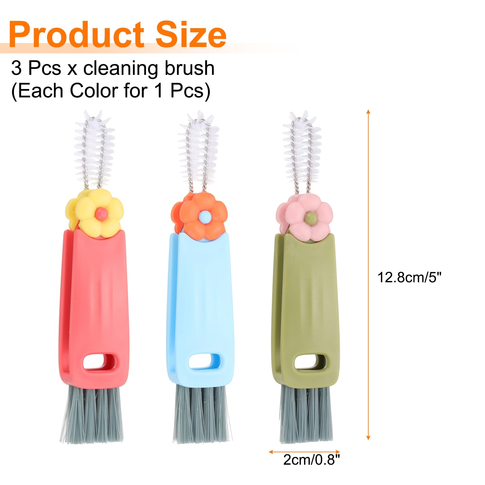 Cup Lid Cleaning Brush, Water Bottle Cleaner Brush with Flower Pattern, for Tight Spaces - 3pcs