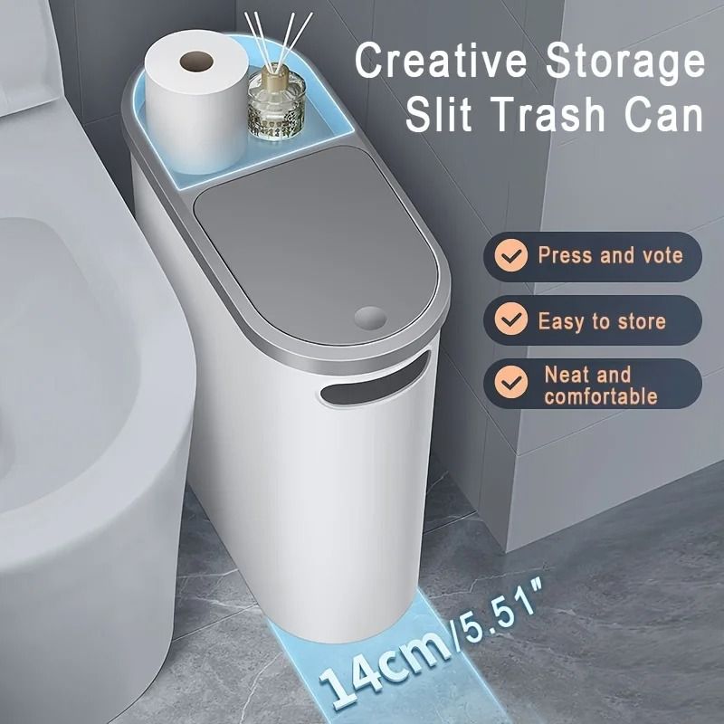 Slim 10L Press Lid Bathroom Trash Can With Lid For Kitchen Bedroom Gap Storage Waste Bin With Space Saving Design Slim 10L Press Lid Bathroom Trash Can With Lid For Kitchen Bedroom Gap Storage Waste Bin With Space Saving Design