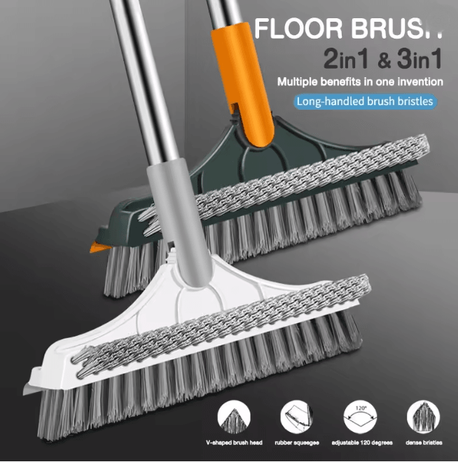 CleanMax 3 In 1 Rotating Cleaning Brush Long Handle Bathroom Scrubber white 102cm 2 In 1