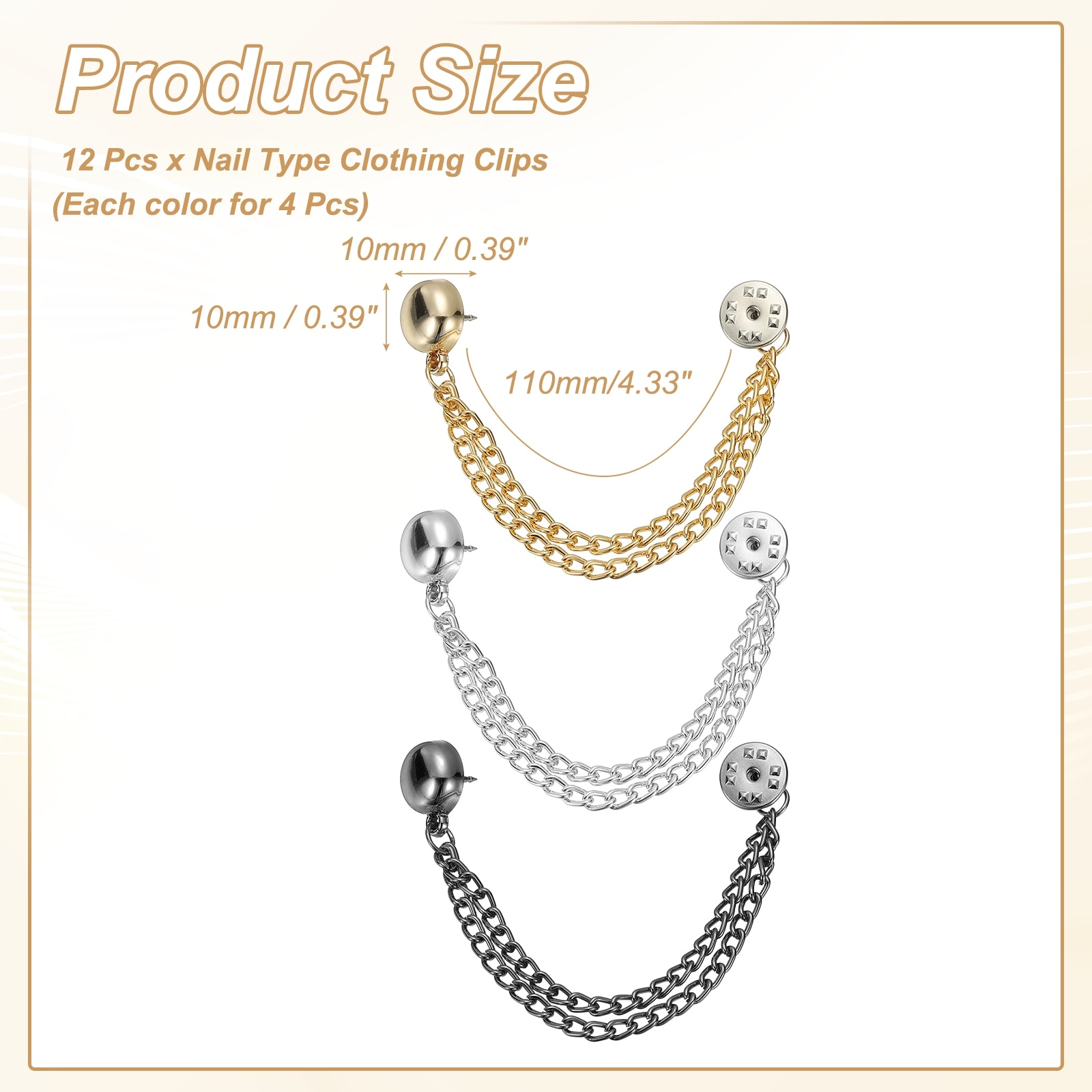Metal Nail Type Clothing Clips, Shirt Tie Scarf Pant Waist Tightener Clips Decorative Accessories Pins for Clothing