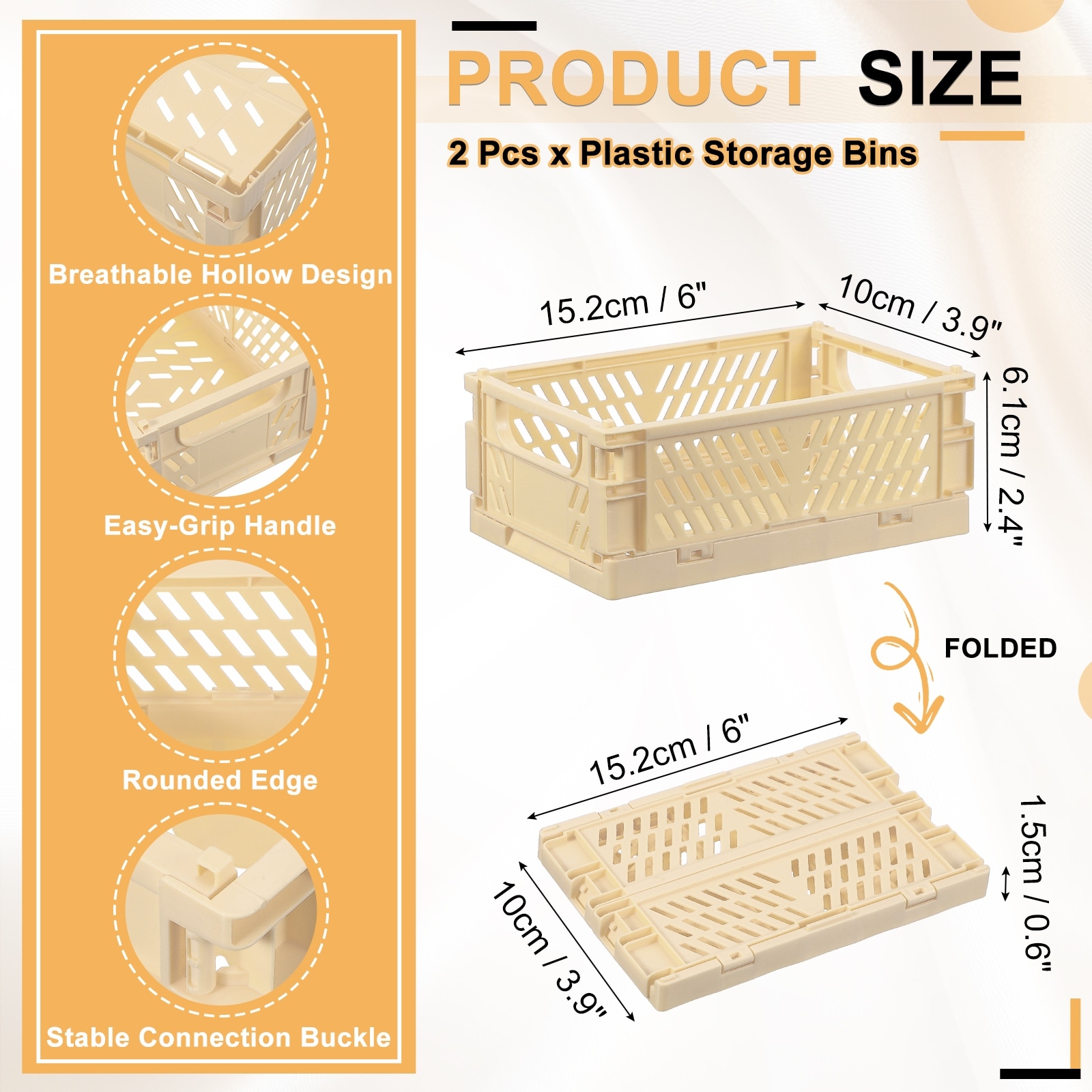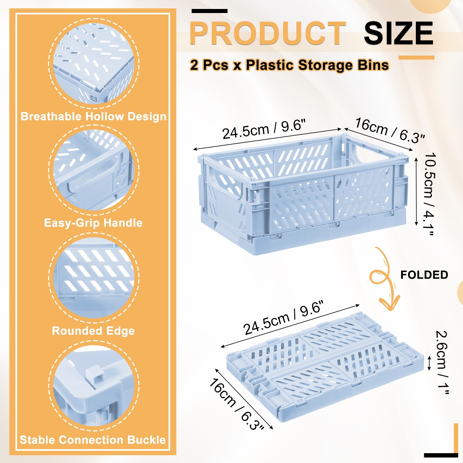 Small Plastic Storage Baskets, Stackable Foldable Storage Bins with Handles Collapsible Crate
