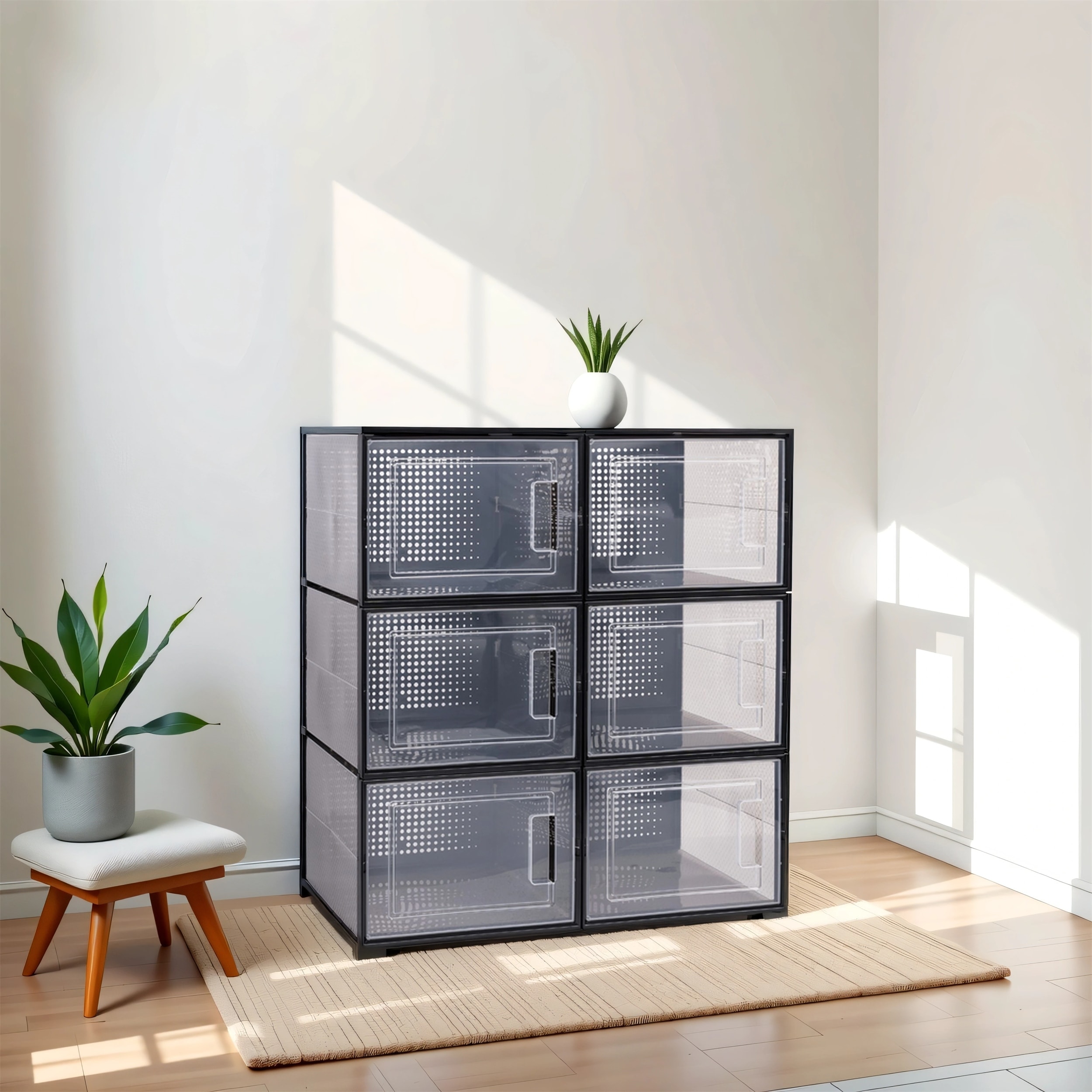6 Packs Clear Shoe Storage Boxes, Stackable Display Containers