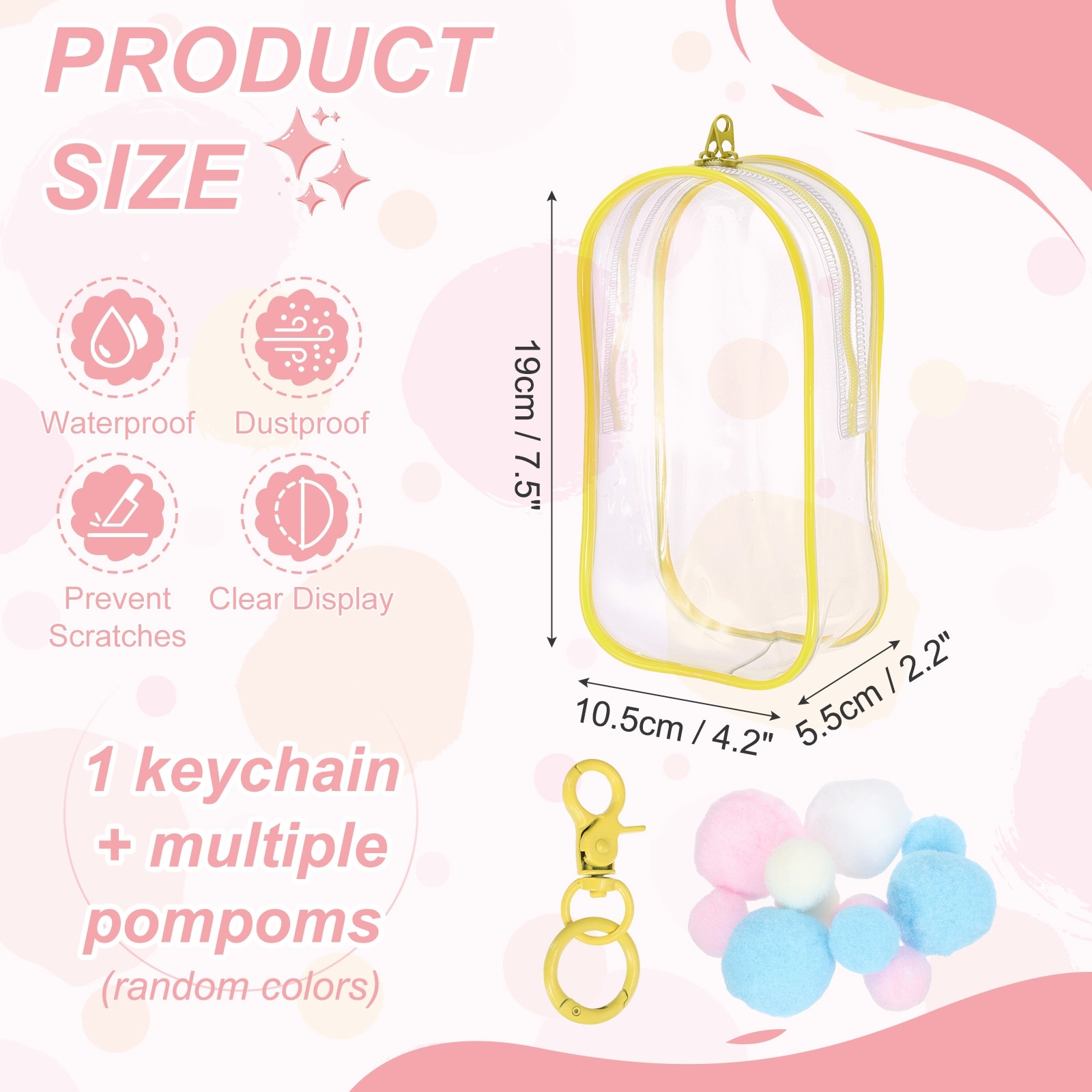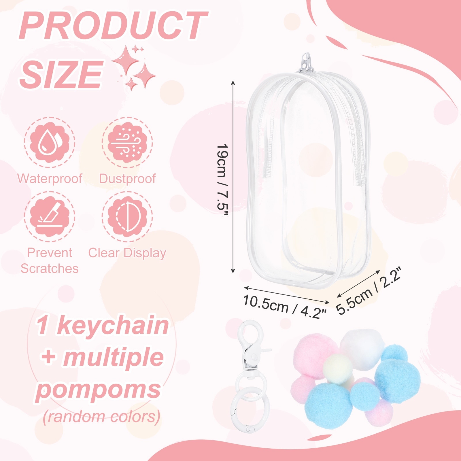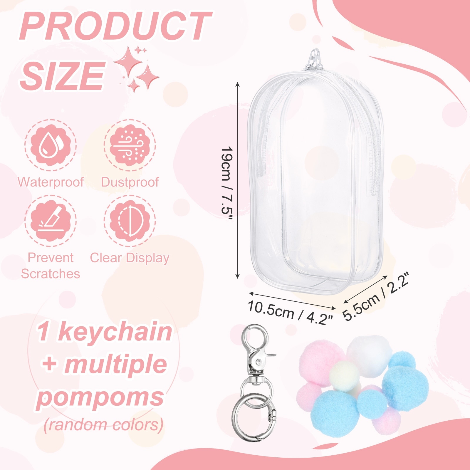 Clear Cosmetic Bag, Oval Travel Makeup Bag with Heart Shape Clip & Pom-Pom Small Pouch Portable Cosmetic Pouch