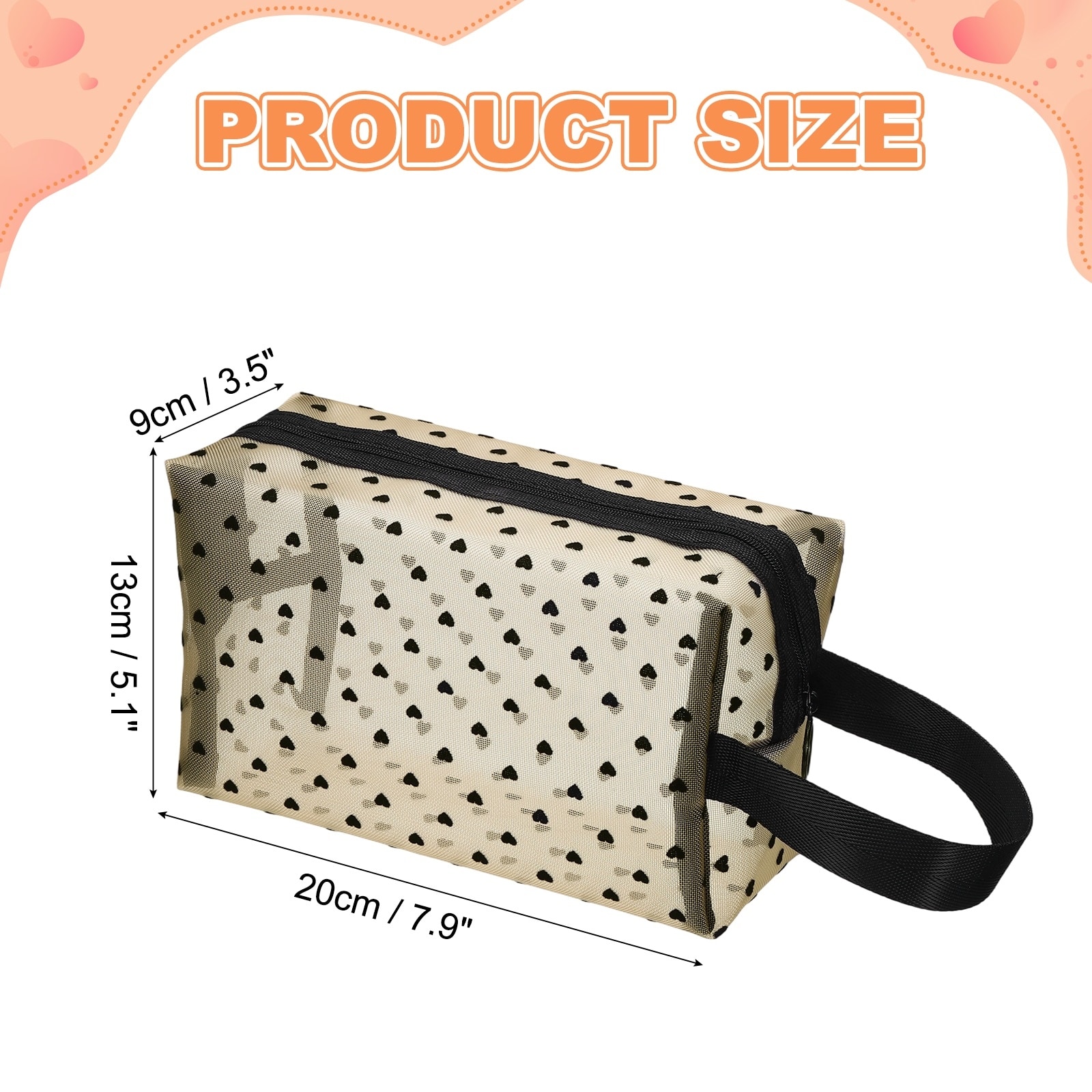 Cute Mini Makeup Bag, Mesh Cosmetic Bag with Handle for Women Small Purse Heart Printed Organizer Pouches with Zipper