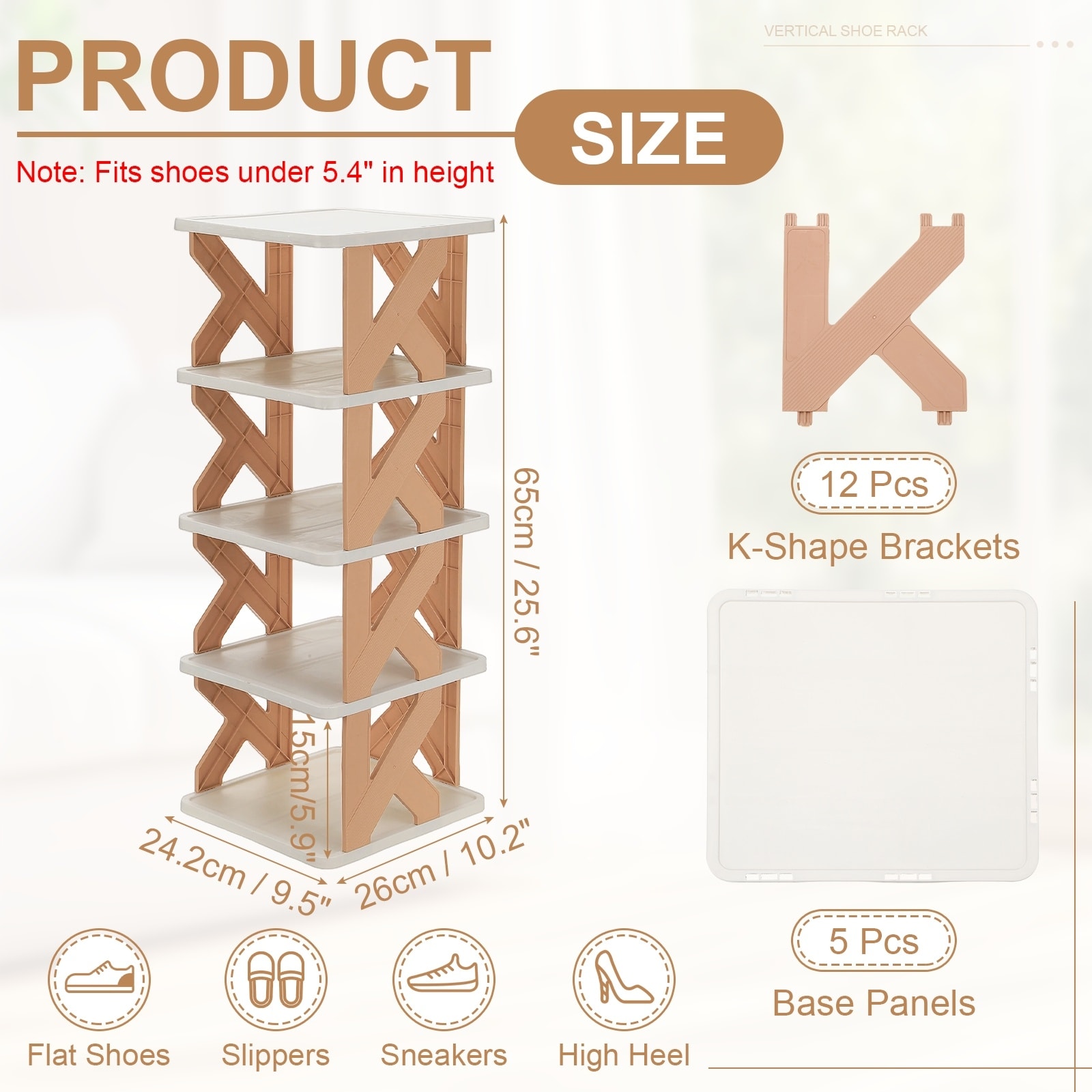 Free Standing Shoe Racks, Vertical Narrow Stackable Organizer Shoes Storage Shelf for Front Door