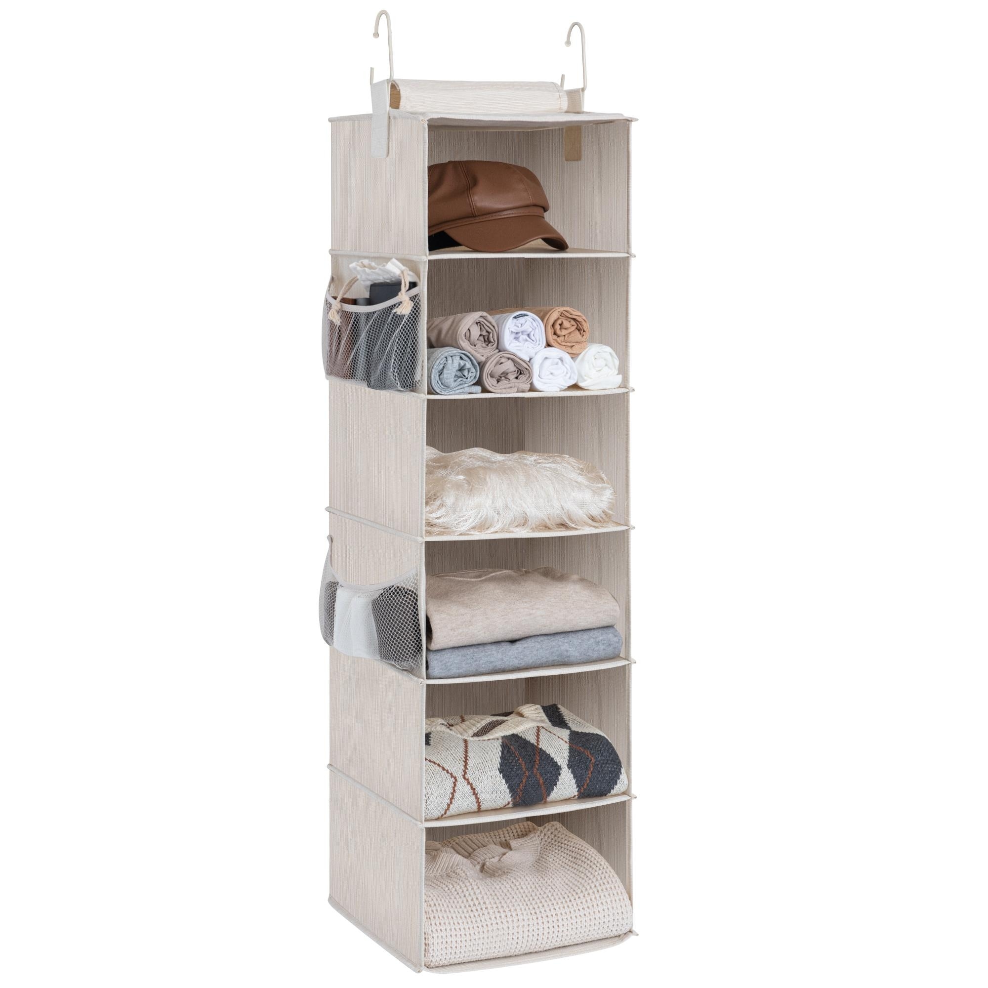 6-Shelf Hanging Closet Organizer, Fabric Hanging Shelves with Side Pockets for Clothing, Bags, Caps - 12"D x 12"W x 47.5"H