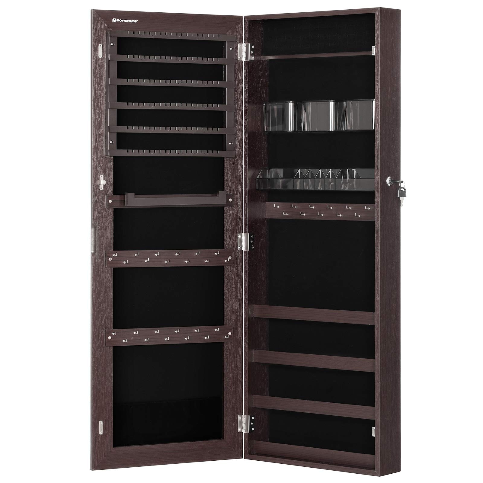 Mirror Jewelry Cabinet Armoire, Wall Mounted Jewelry Storage, Hanging Lockable Frameless with 2 Plastic Cosmetic Organizers