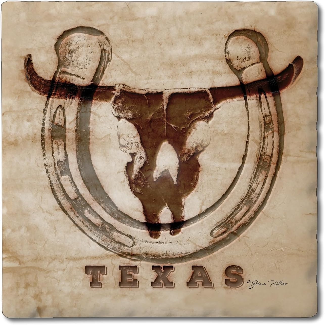 Western Skull 4-Pack Tumbled Tile Stone Coasters with Protective Cork Backing Manufactured in The USA