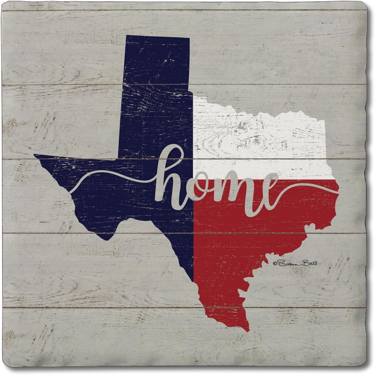 Texas Flag Home 4-Pack Tumbled Tile Stone Coasters with Protective Cork Backing Manufactured in The USA