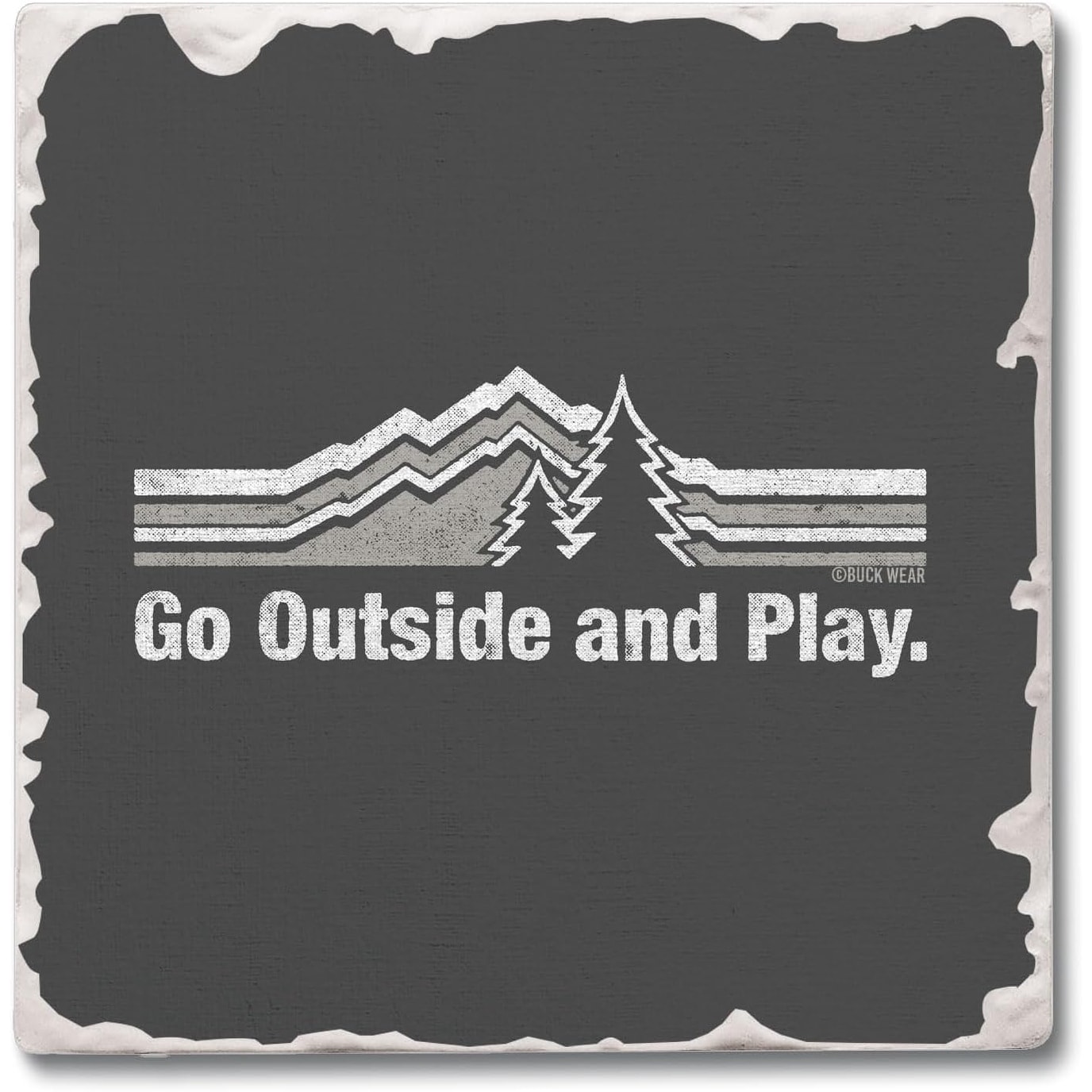 Go Outside 4 Pack Tumbled Tile Stone Coaster with Protective Cork Backing Manufactured in The USA 4" Square