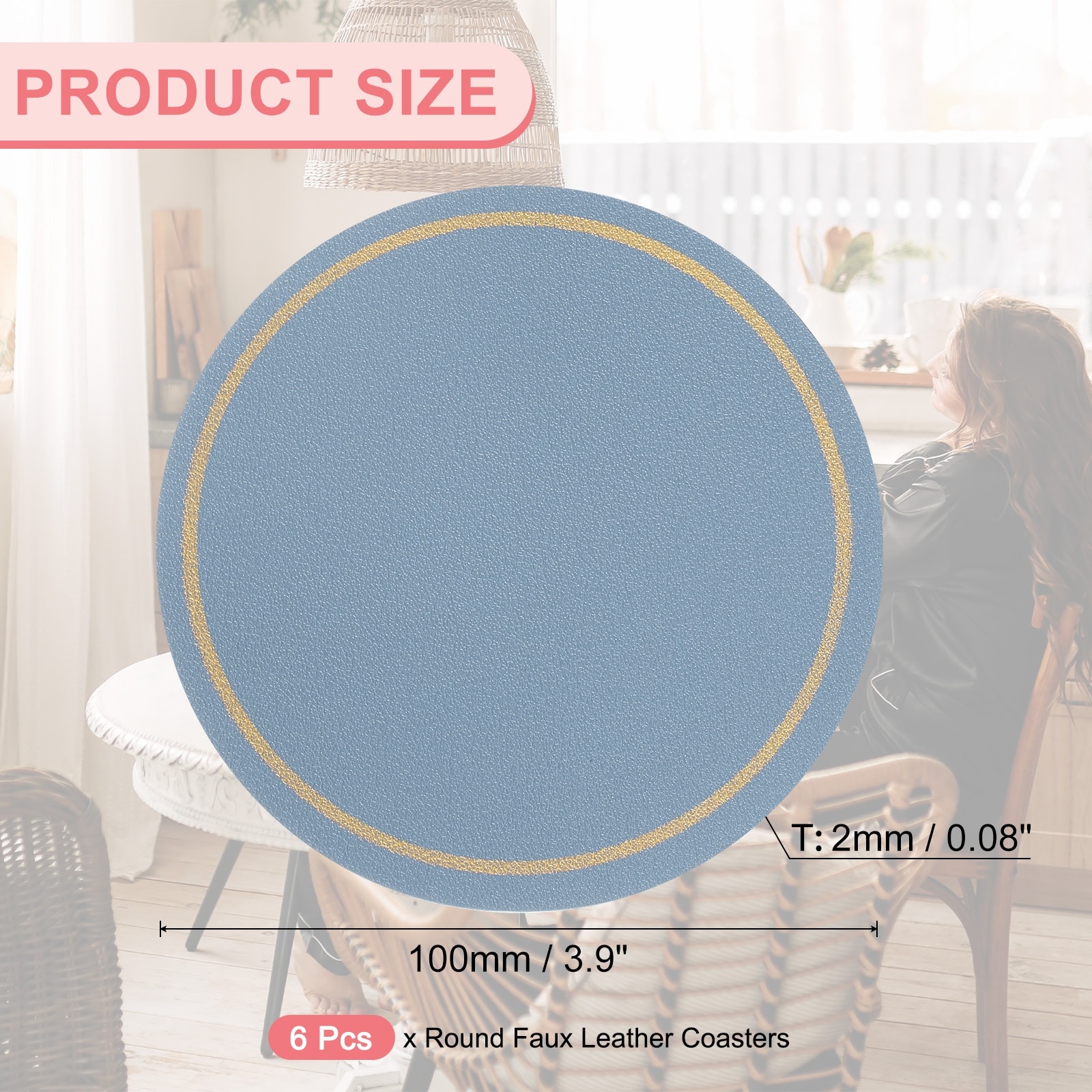 6 Pcs Leather Coasters, Round Drinks Coasters 4 Inch