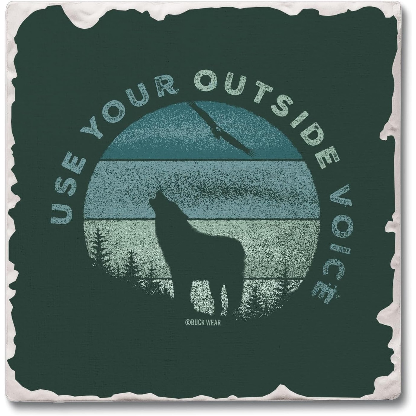 Outside Voice 4 Pack Tumbled Tile Stone Coaster with Protective Cork Backing Made in The USA 4" Square