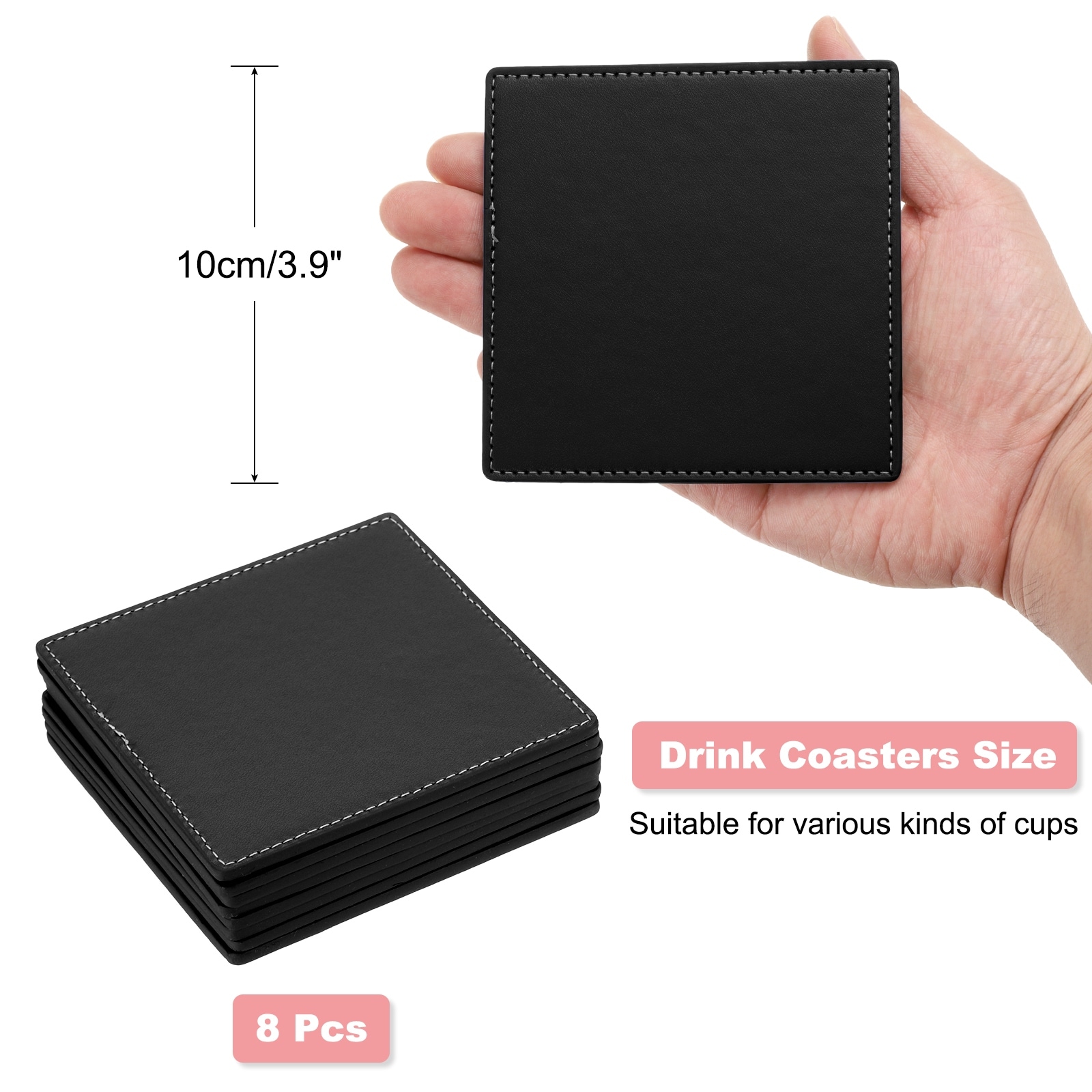 Square Drink Coasters Set of 8 White Stitched Dual Sided
