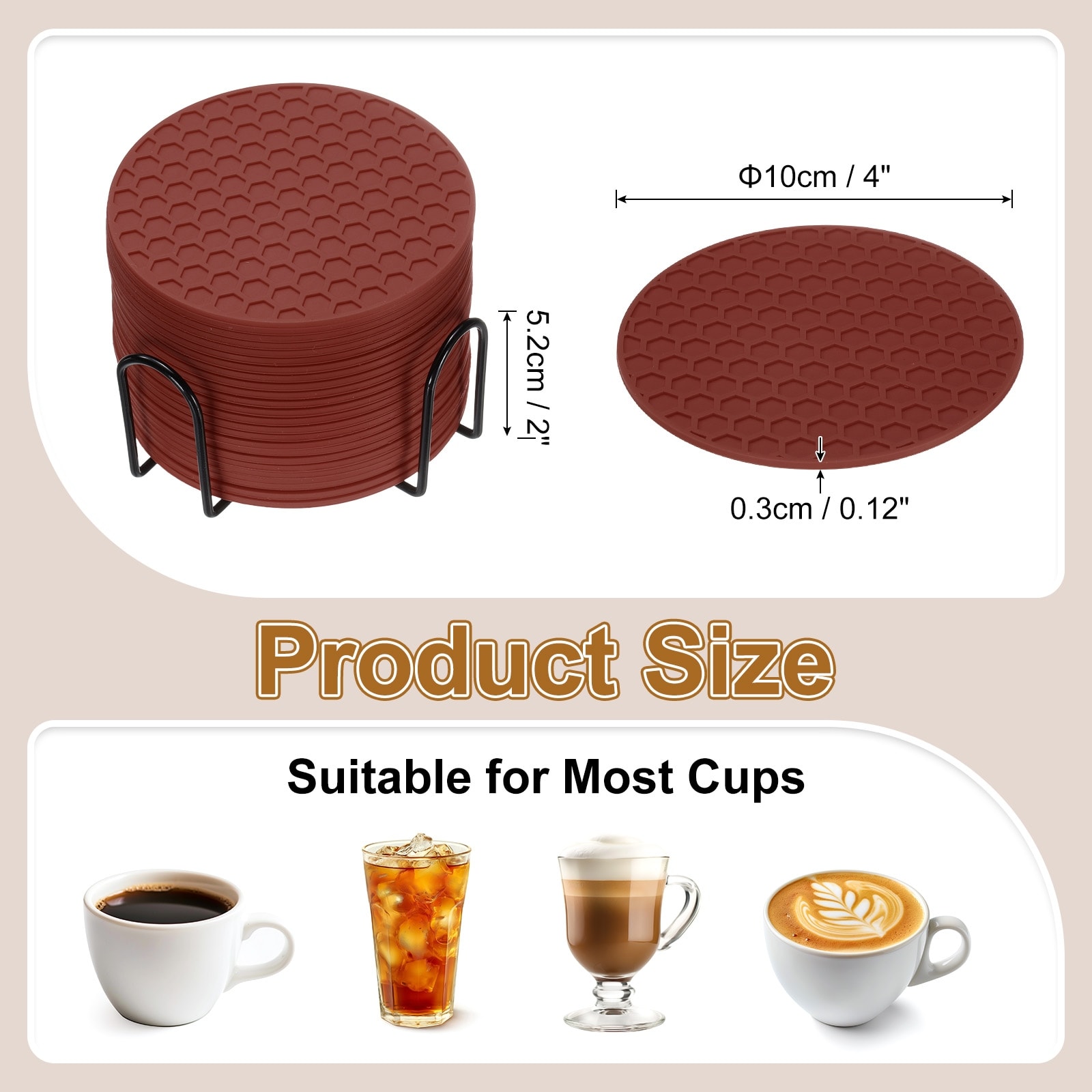 Silicone Coasters with Holder, Round Coaster for Drink, Non-Slip Non-Stick Heat Resistant Place Mats Washable