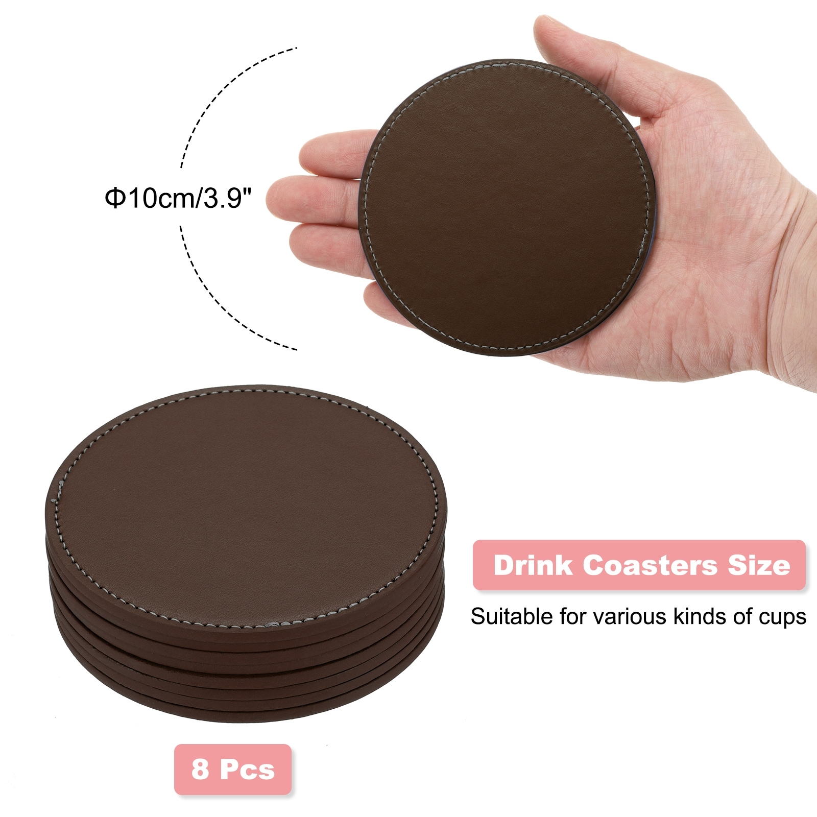 Round Drink Coasters Set of 8 White Stitched Dual Sided 4"x4"