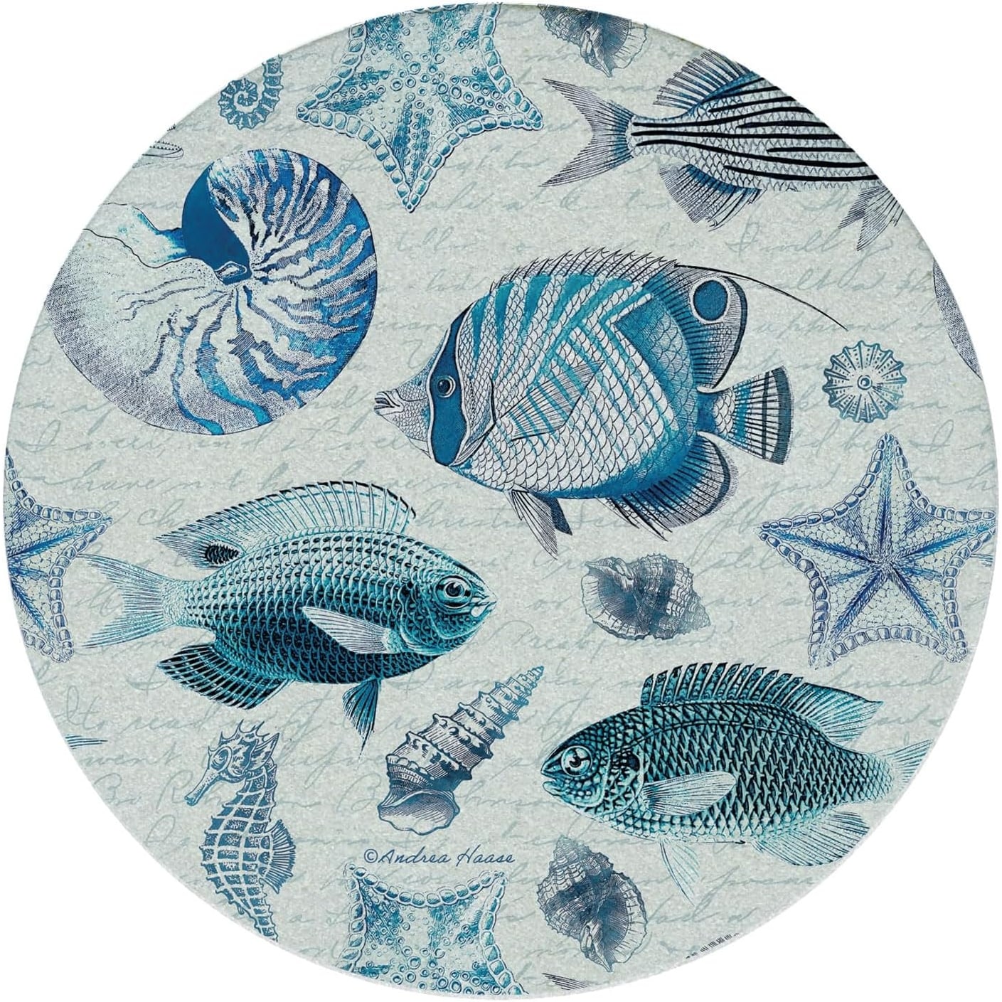 Vintage Ocean Life 4-Pack Round Natural Sandstone Coaster with Protective Cork Backing Manufactured in The USA 4" Diameter