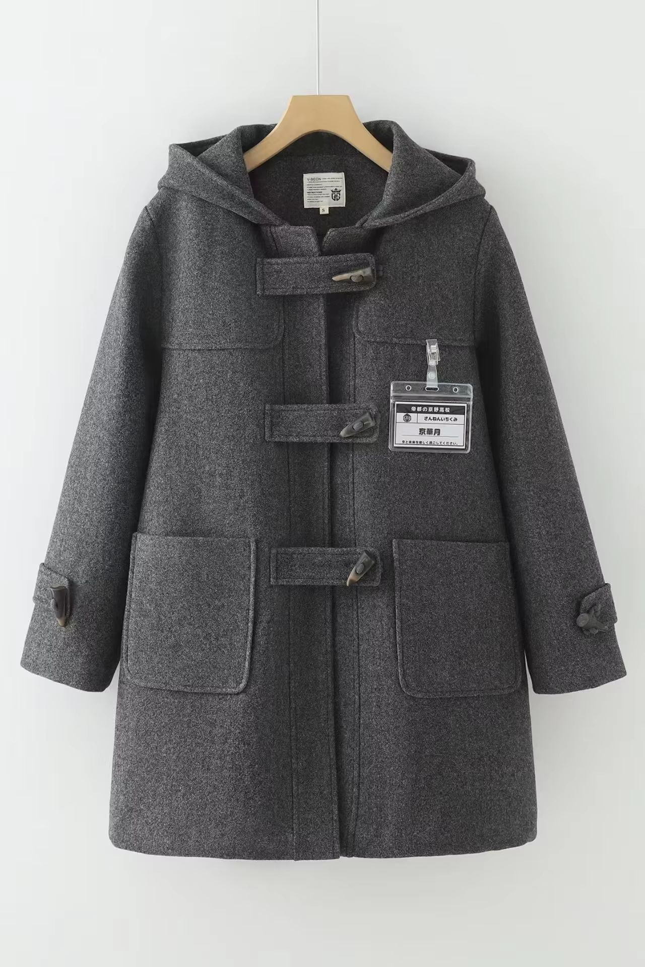 Winter Navy Collar Preppy Style Wool Coat For Women Elegant Long Women's Winter Peacoat deep Navy Hooded Duffle s(us 4)