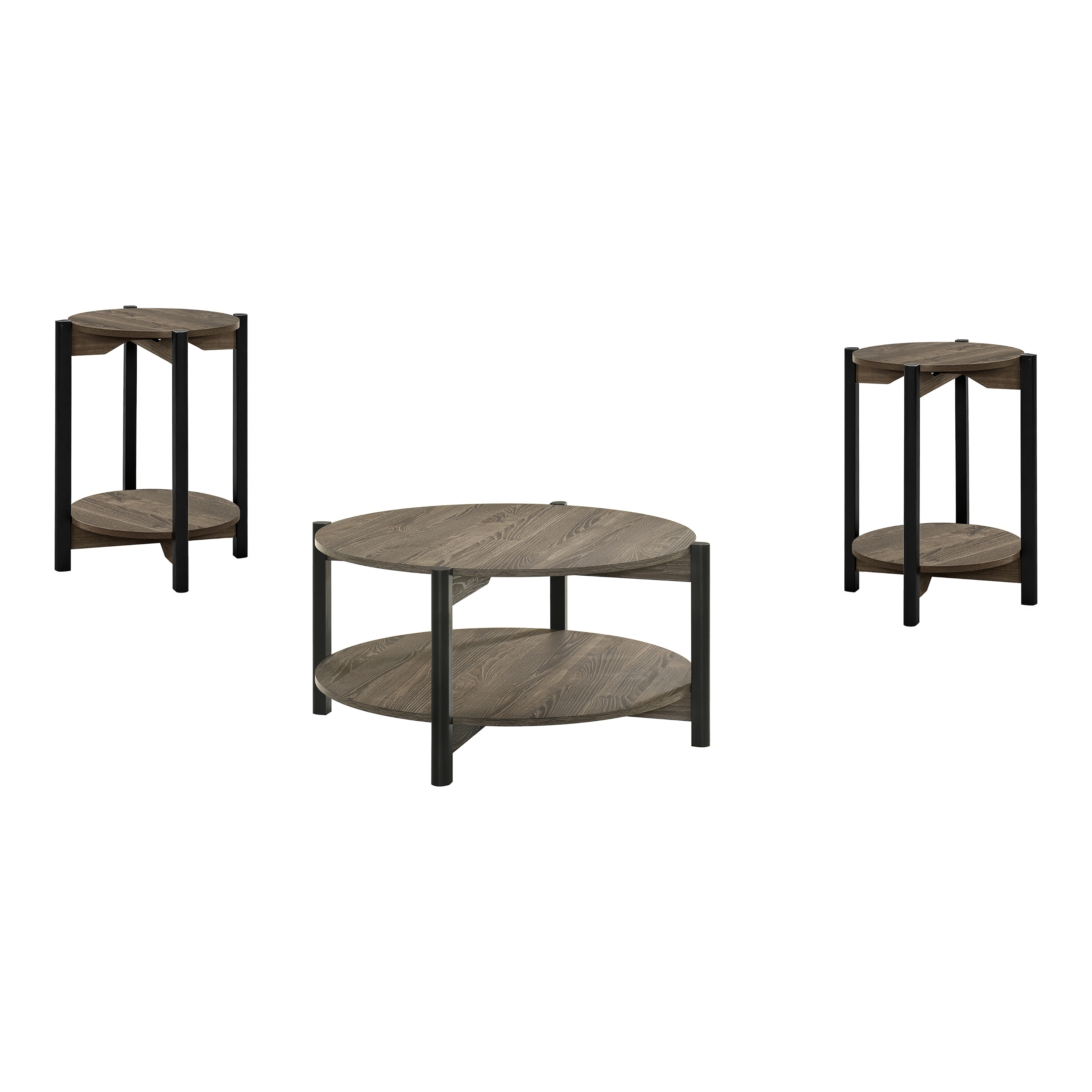 Furniture of America Rovion 3-Piece Round Wood Coffee Table Set with Open Bottom Shelf