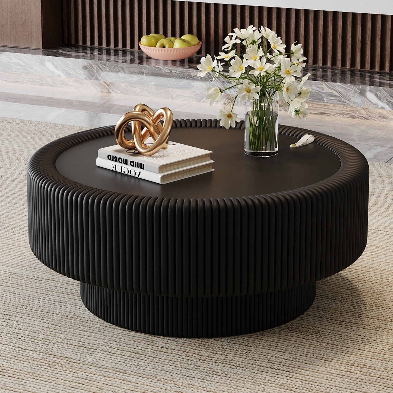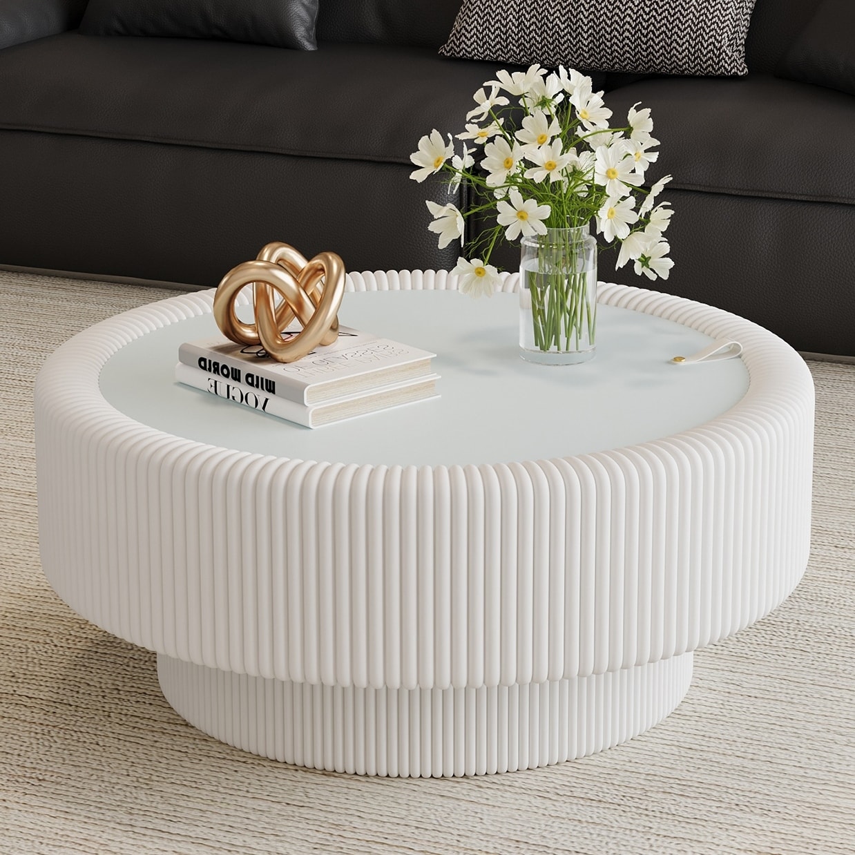 Modern Round Nesting Coffee Table Fluted with Drawer