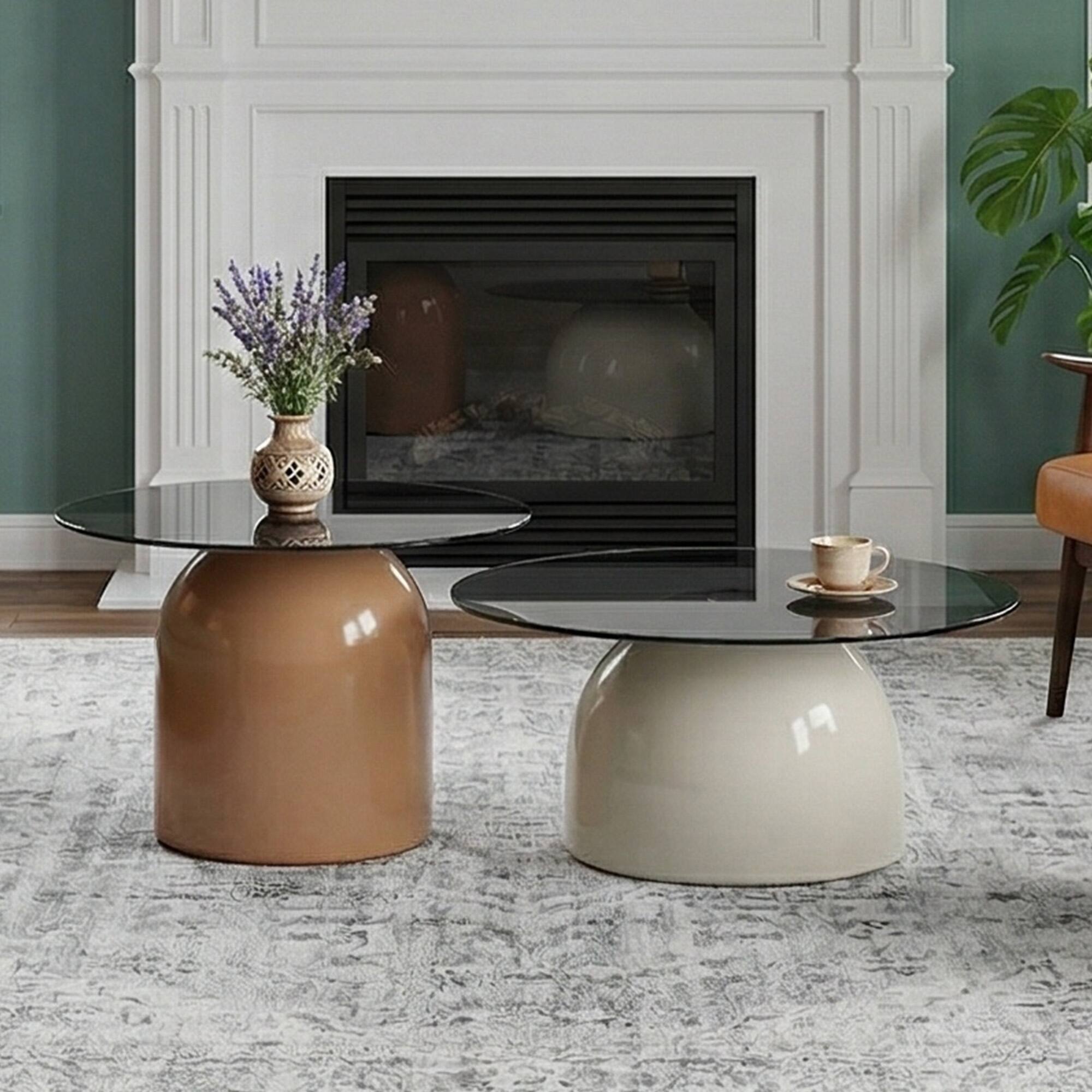 Nesting Coffee Table Set of 2, Glass Desktop for Living Room, Space Saving Circle Center Table for Saving Space