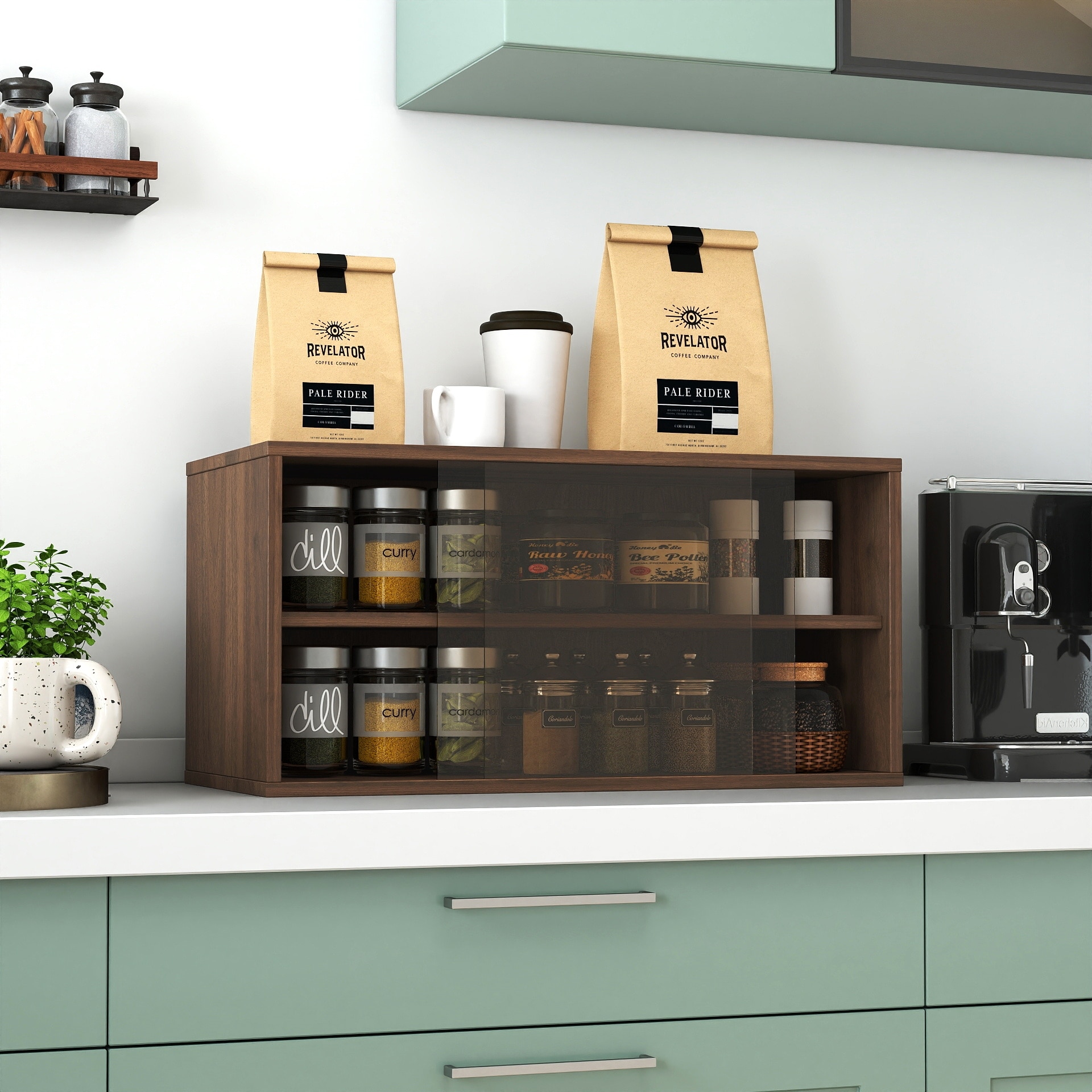 Stackable Display Cabinet with 2 Glass Sliding Doors - 28.35" W, Brown Walnut Finish - 28.35*13.78*14.17