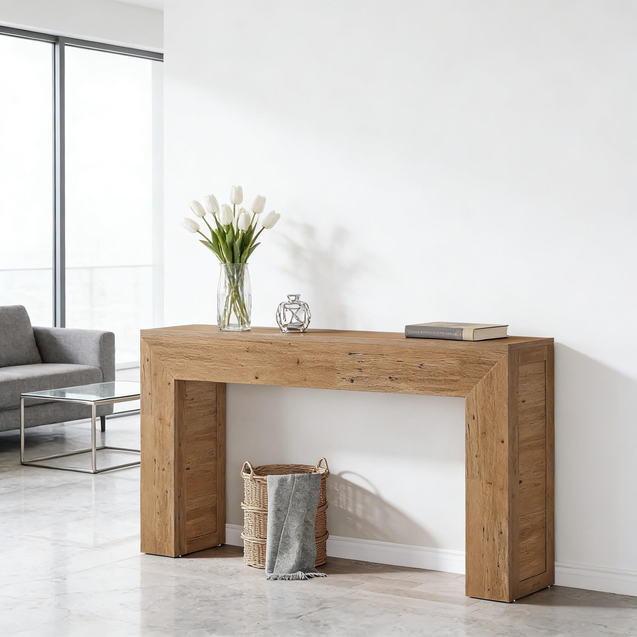 59-inch Curved Design Console Table: Unique Vertical Stripe Aesthetic, Ideal for Living Room, Study, and Entrance