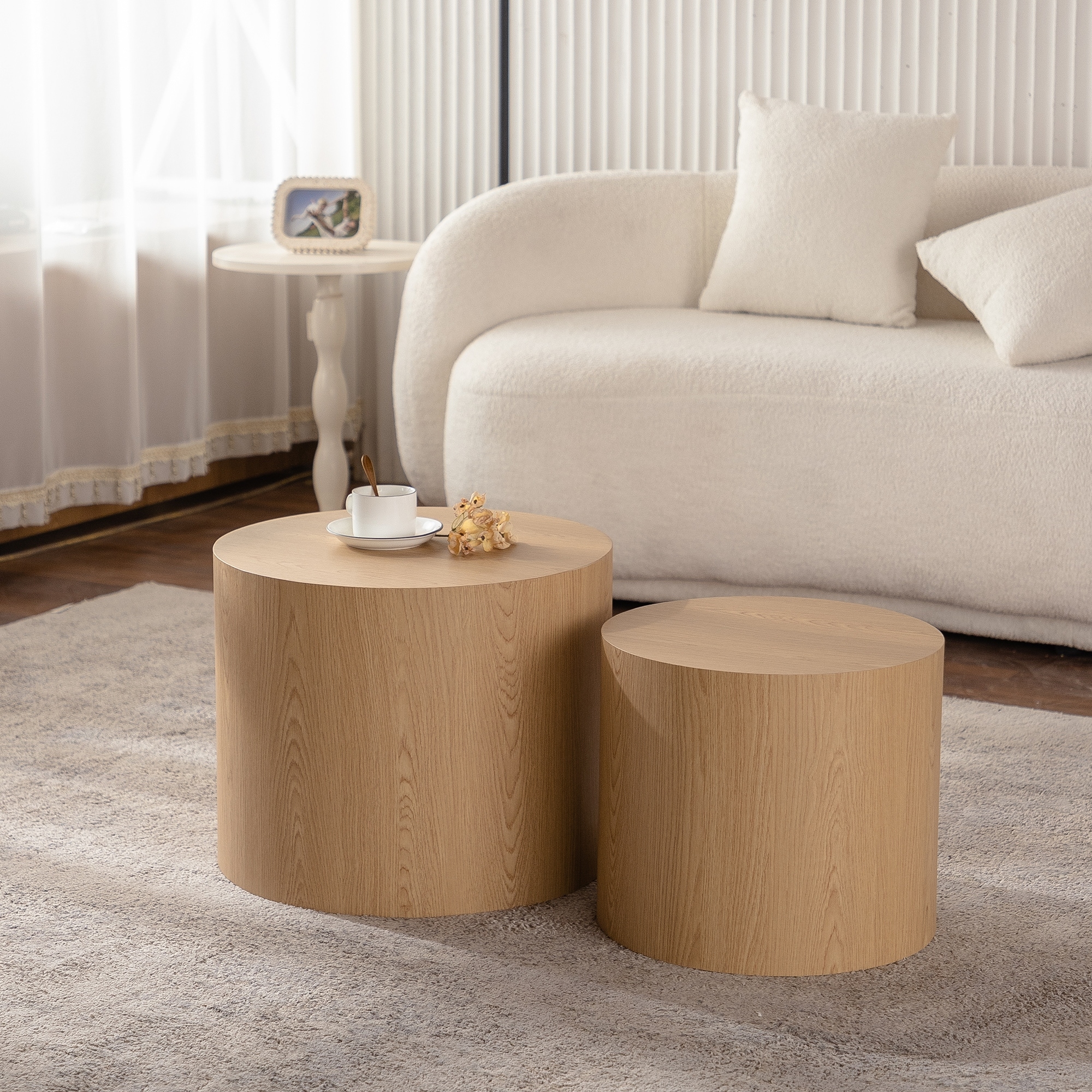 GDFStudio - Aurelia Modern Round Wooden Nesting Coffee Table Set of 2 with Space-Saving Design